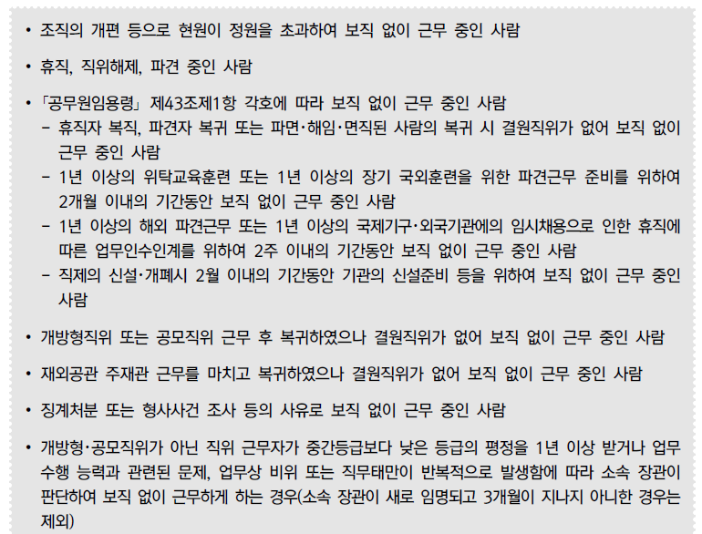 ∙ 별정직 고위공무원에 대한 휴직・정직・복직(직무등급이 가장 높은 등급의 직위 제외)