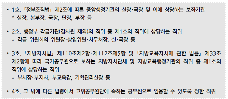 가. 고위공무원단에 속하는 공무원(법 제2조의2)