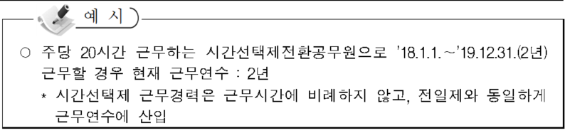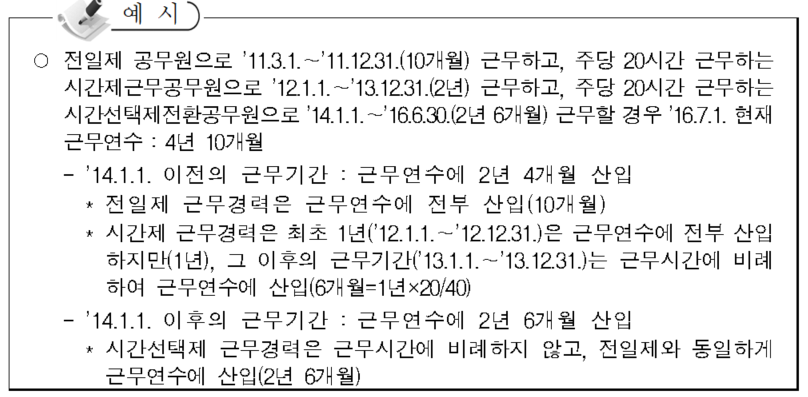 (1)근무시간에 비례하지 않고 전일제공무원과 동일하게 1년 단위로 근무연수에 산입