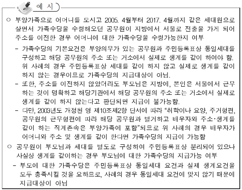 라. 부양가족의 구체적 사례