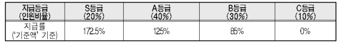 < 지급등급별 인원비율과 지급률을 달리 정할 수 있는 기준 >