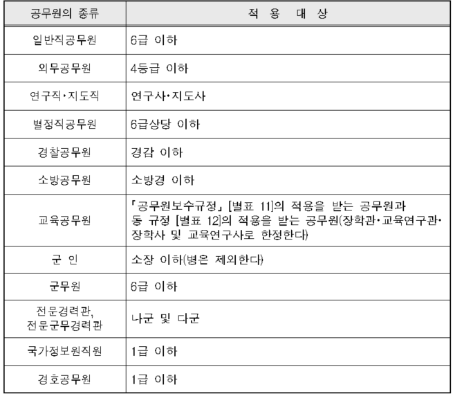 가. 적용대상(「공무원수당 등에 관한 규정」 별표 2의2)