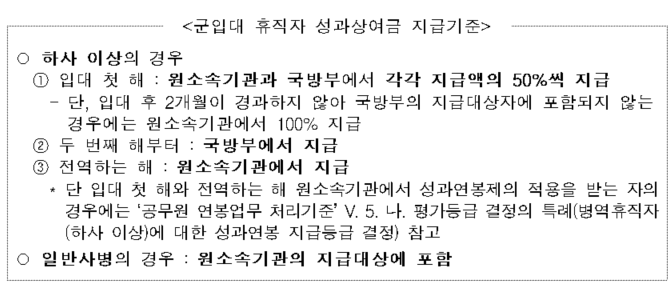 -지급기준일과 평가 주기를 달리하는 기관으로의 인사이동, 퇴직 후 재채용 등으로 인하여 지급대상에서 제외되는 경우에는 전년도 12월 31일 기준 소속된 기관의 지급대상에 포함