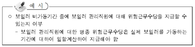 1) 직무의 위험성, 2) 상시 종사 여부, 3) 직접 종사 여부를 판단하여 수당을 지급하여야 함