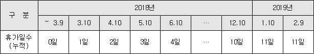 < 휴가일수 예시 : 2018. 2. 10. 실무수습을 실시한 경우 >