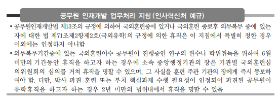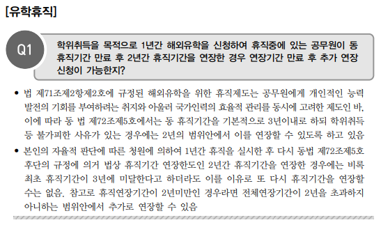 * 1년 이상의 과정에 대해서는 준비 및 정리에 필요한 기간을 앞뒤로 각각 1주 범위로 휴직기간에 포함할 수 있음
