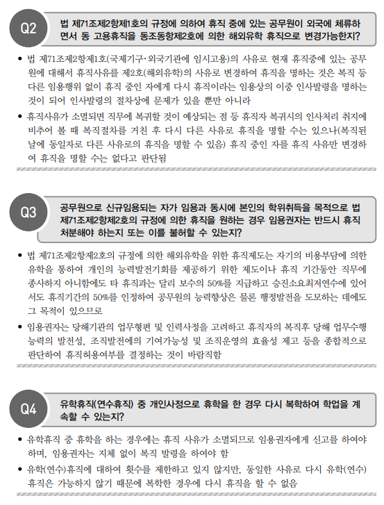(2) 유학휴직(법 제71조제2항제2호, 공무원임용규칙 제7장제6절)