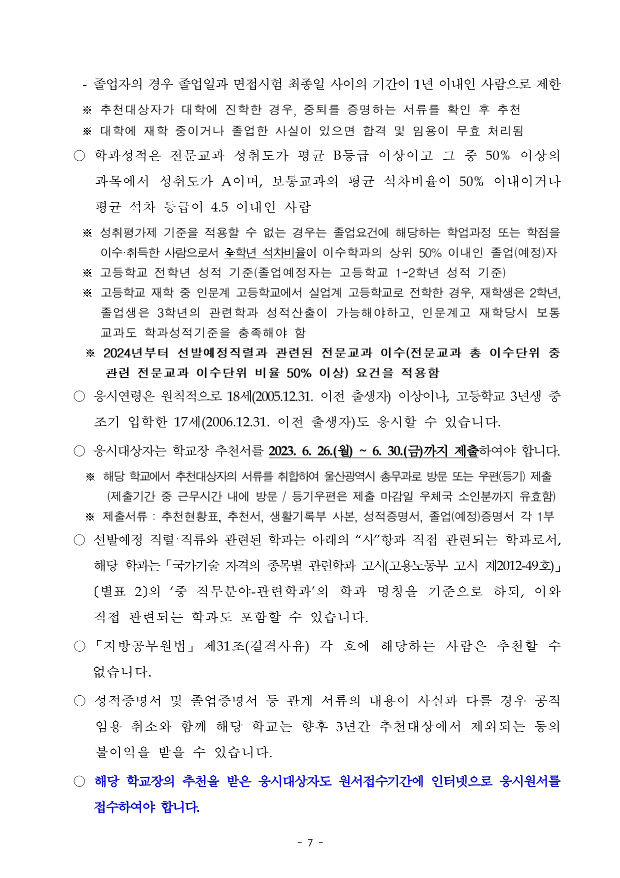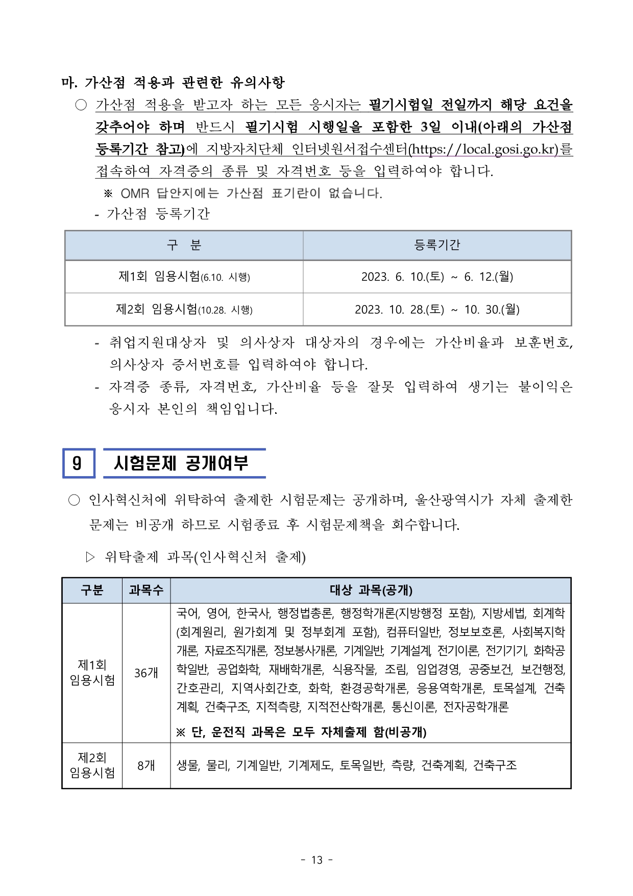 2023년도 울산광역시 지방공무원 임용시험 계획 공고문(배포용).hwpx