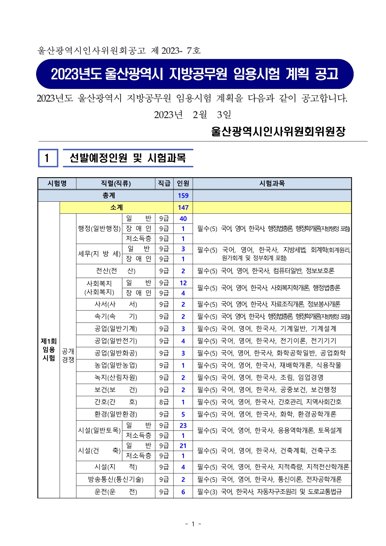 ★2023년도 울산광역시 지방공무원 임용시험 계획 공고문.pdf