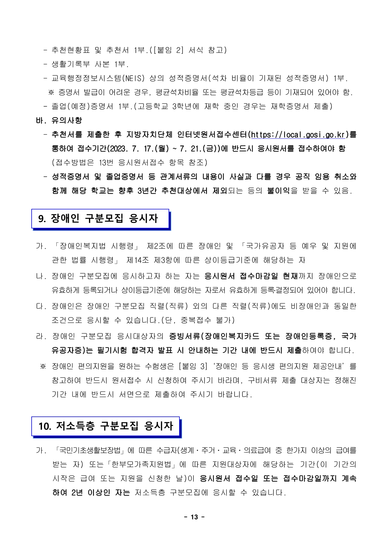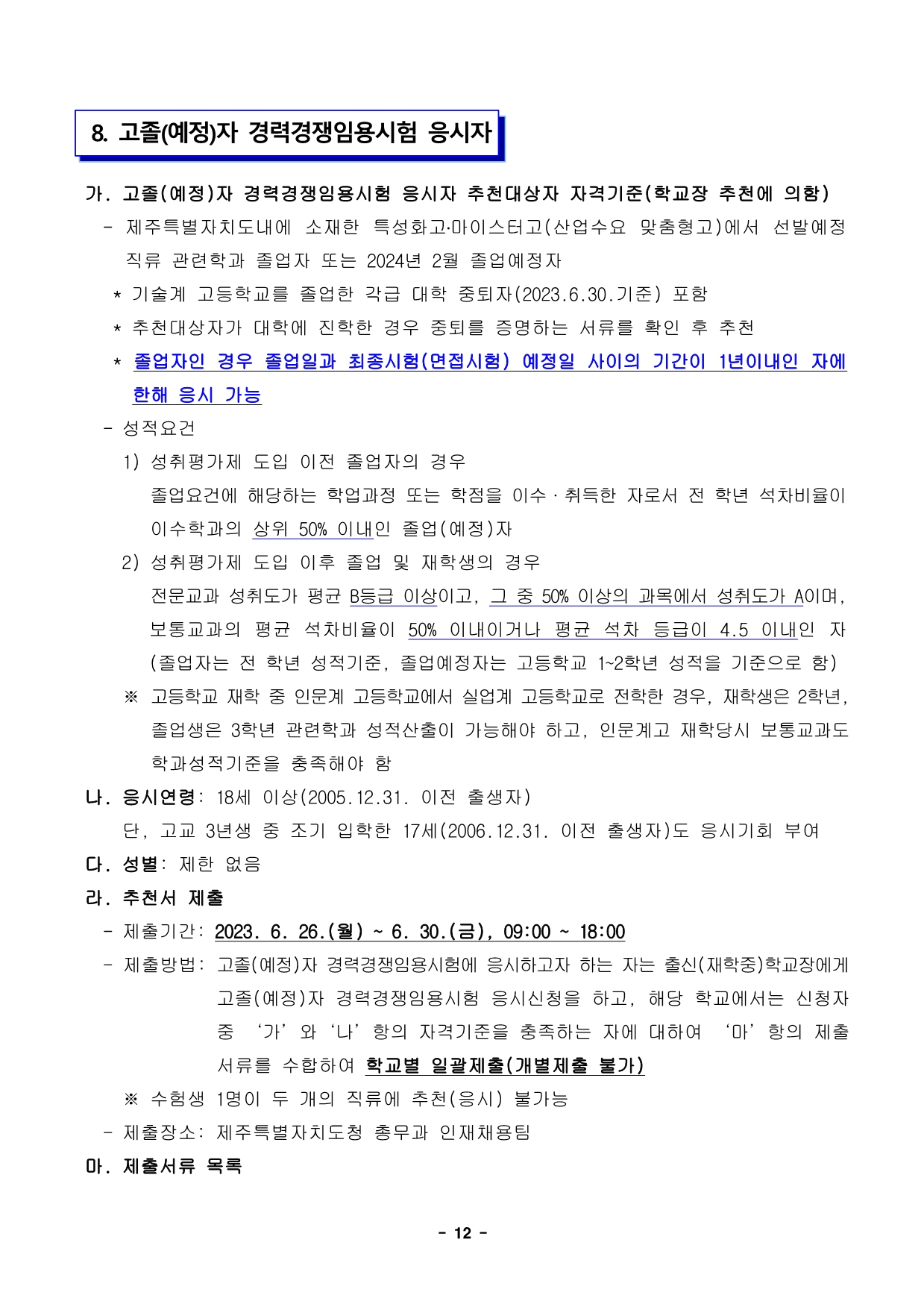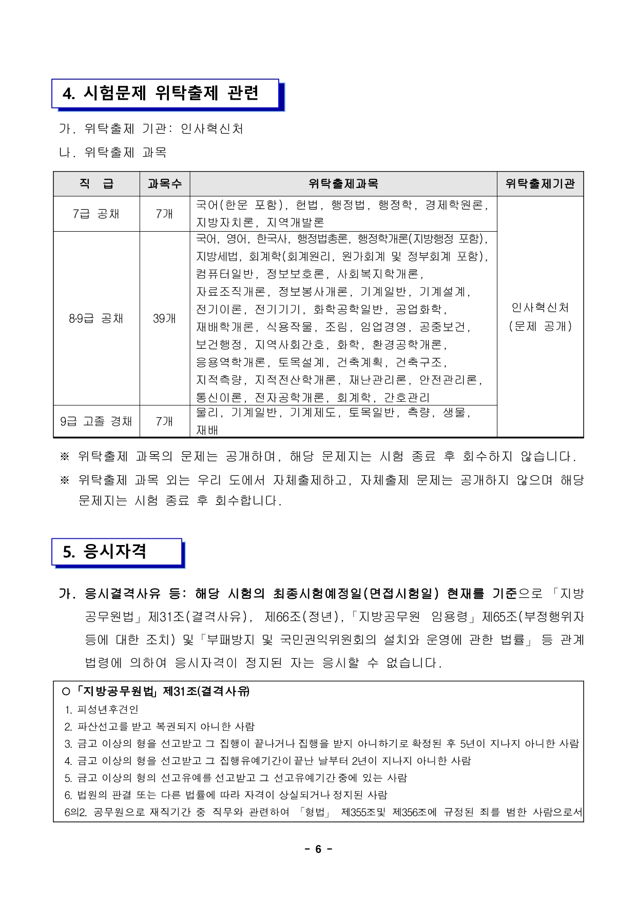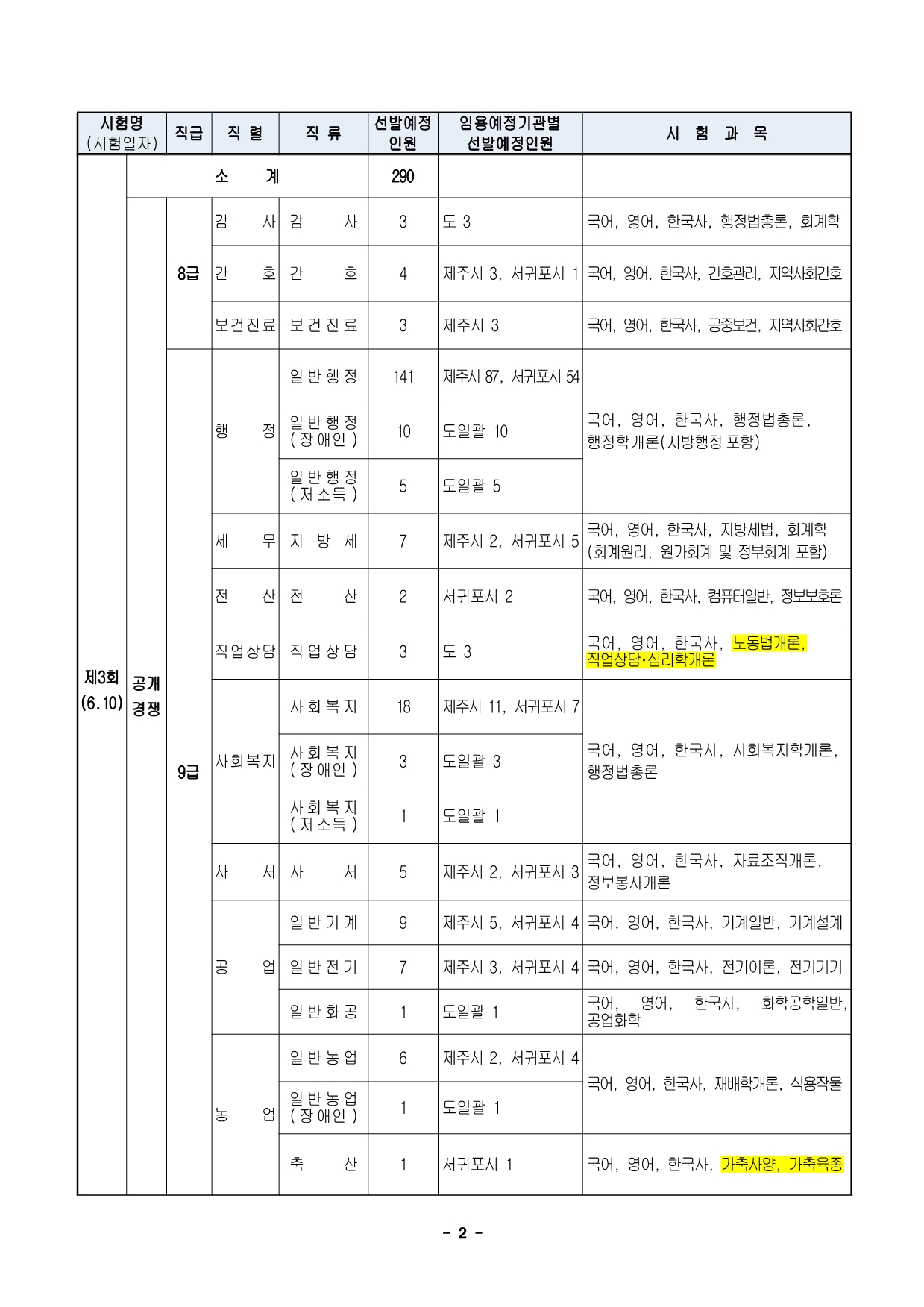 01.(인사위 공고 제62호) 2023년도 제주특별자치도 지방공무원 임용시험 시행계획 공고.hwp