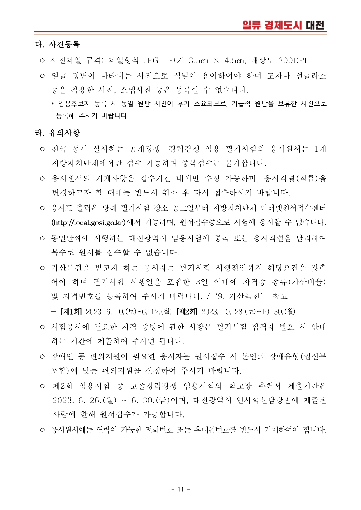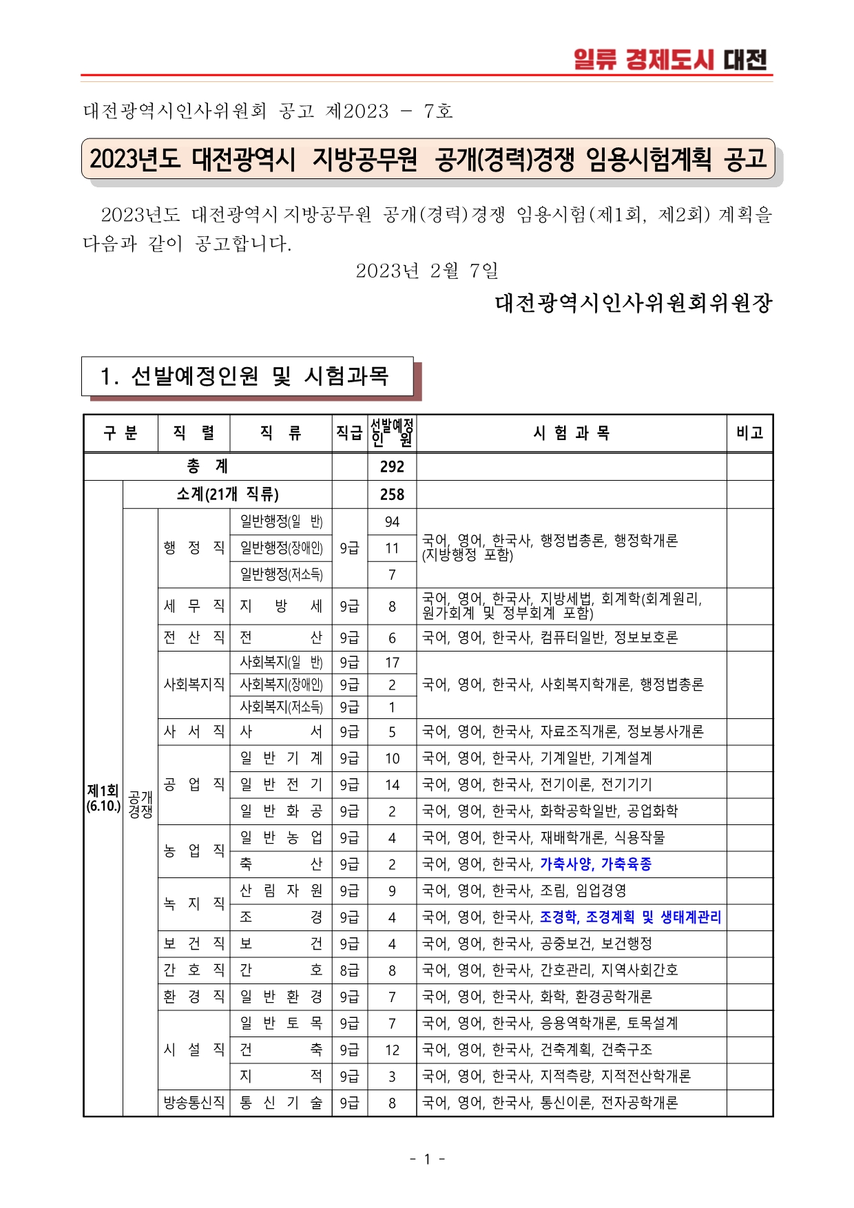 ★(공고문) 2023년도 대전광역시 지방공무원 공개(경력)경쟁 임용시험계획 공고.hwp