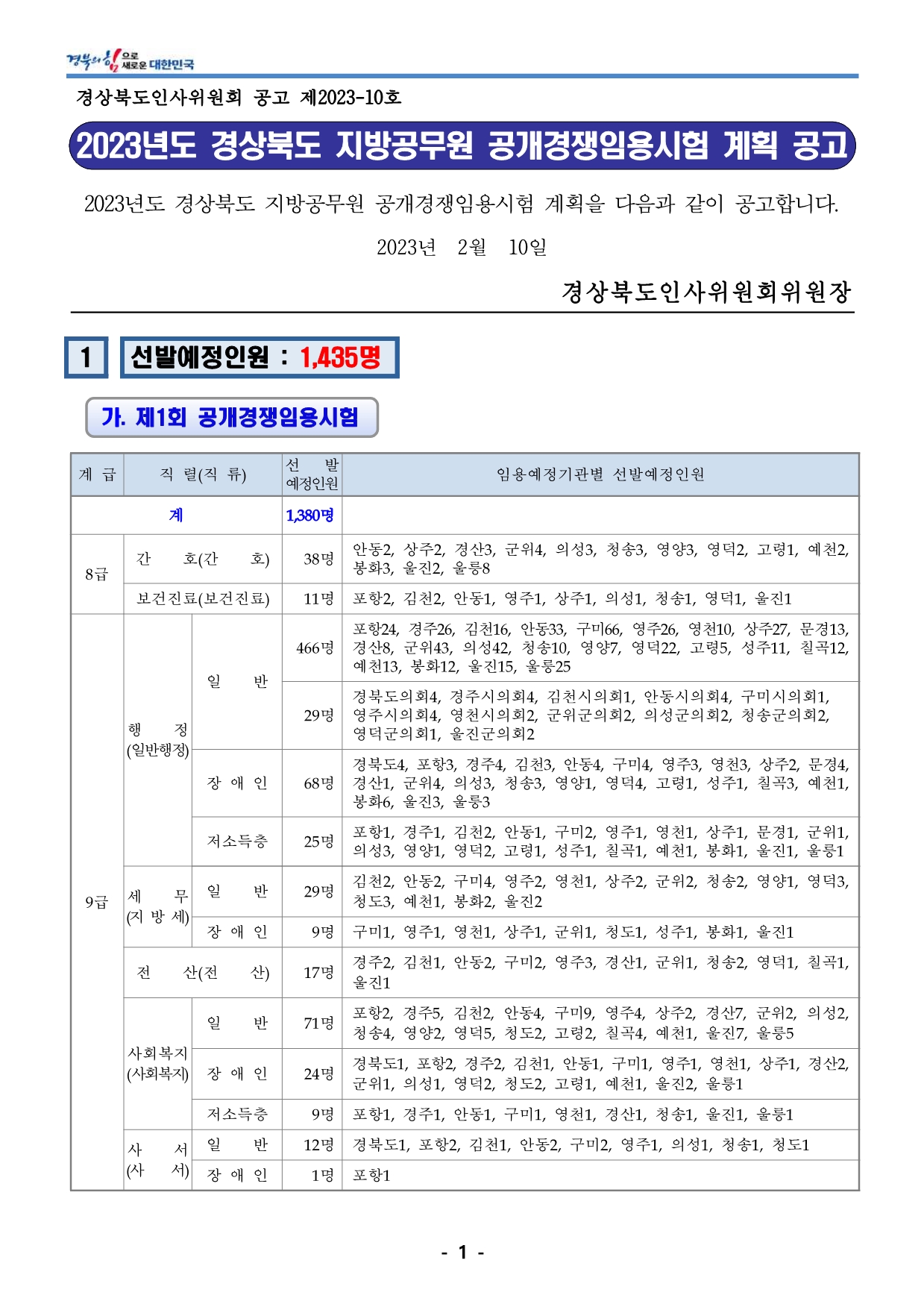 [공고문]2023년도 경상북도 지방공무원 공개경쟁임용시험 계획 공고(배포용).hwp
