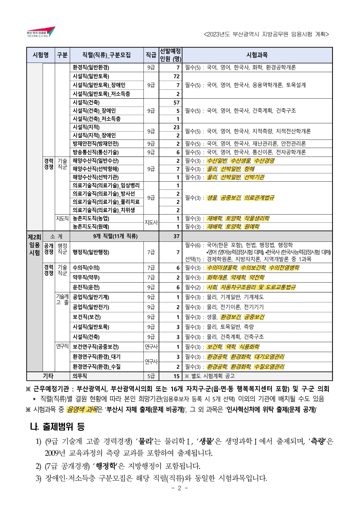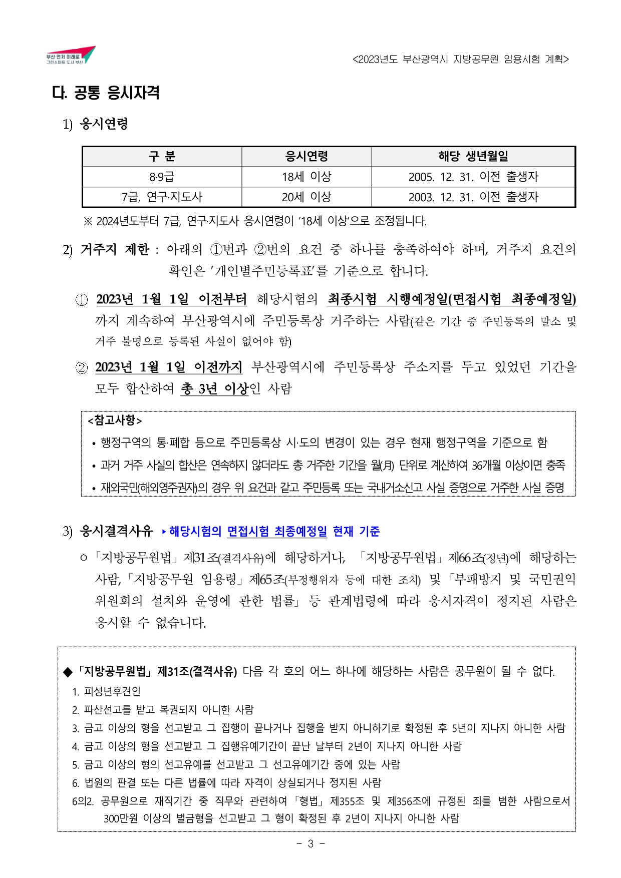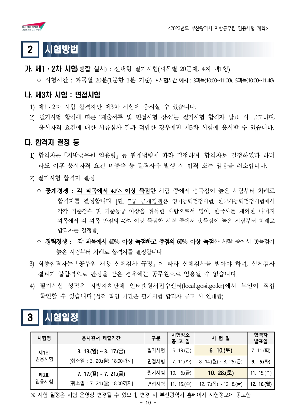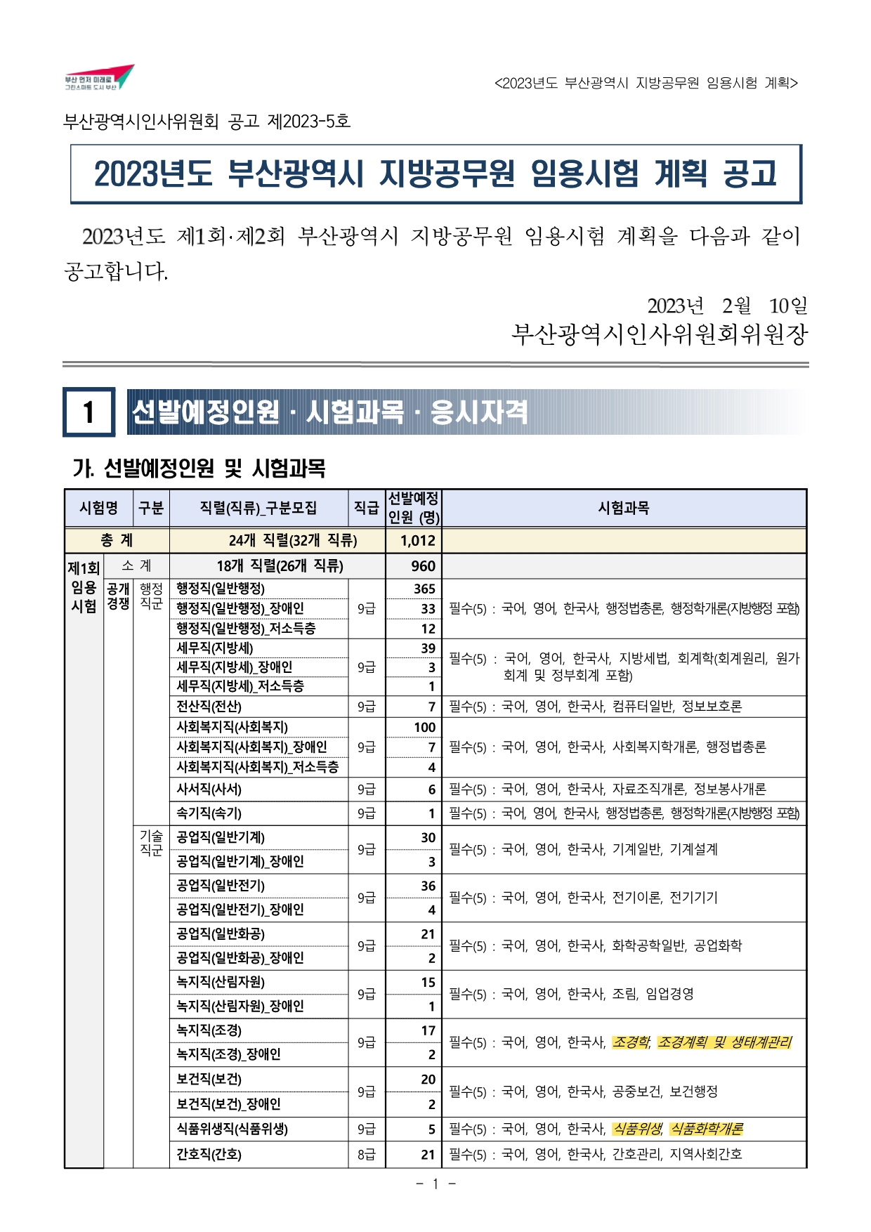 2023년도 부산광역시 지방공무원 임용시험 계획 공고문(게시).hwp