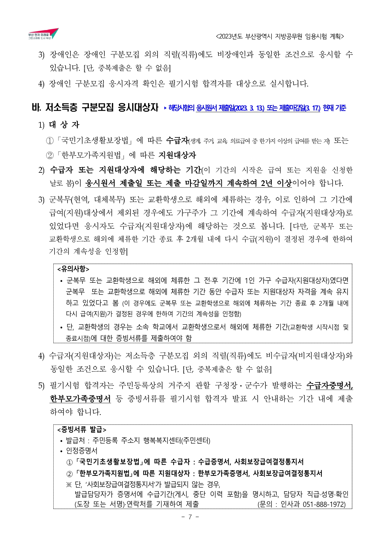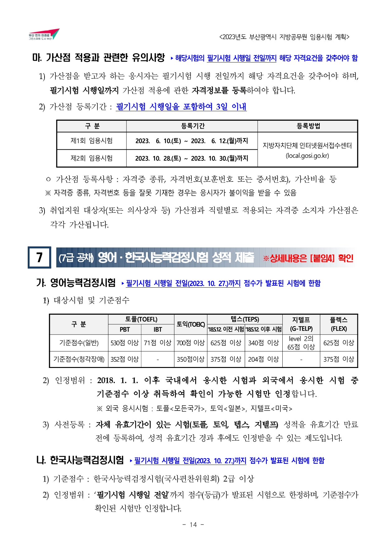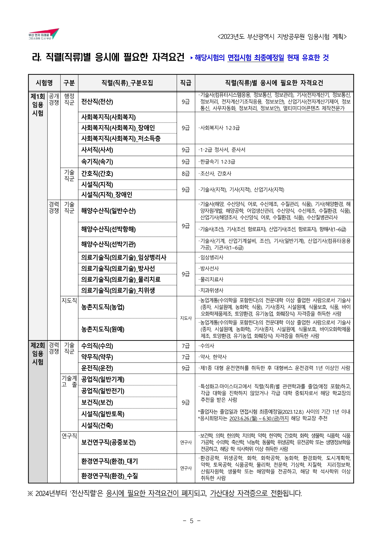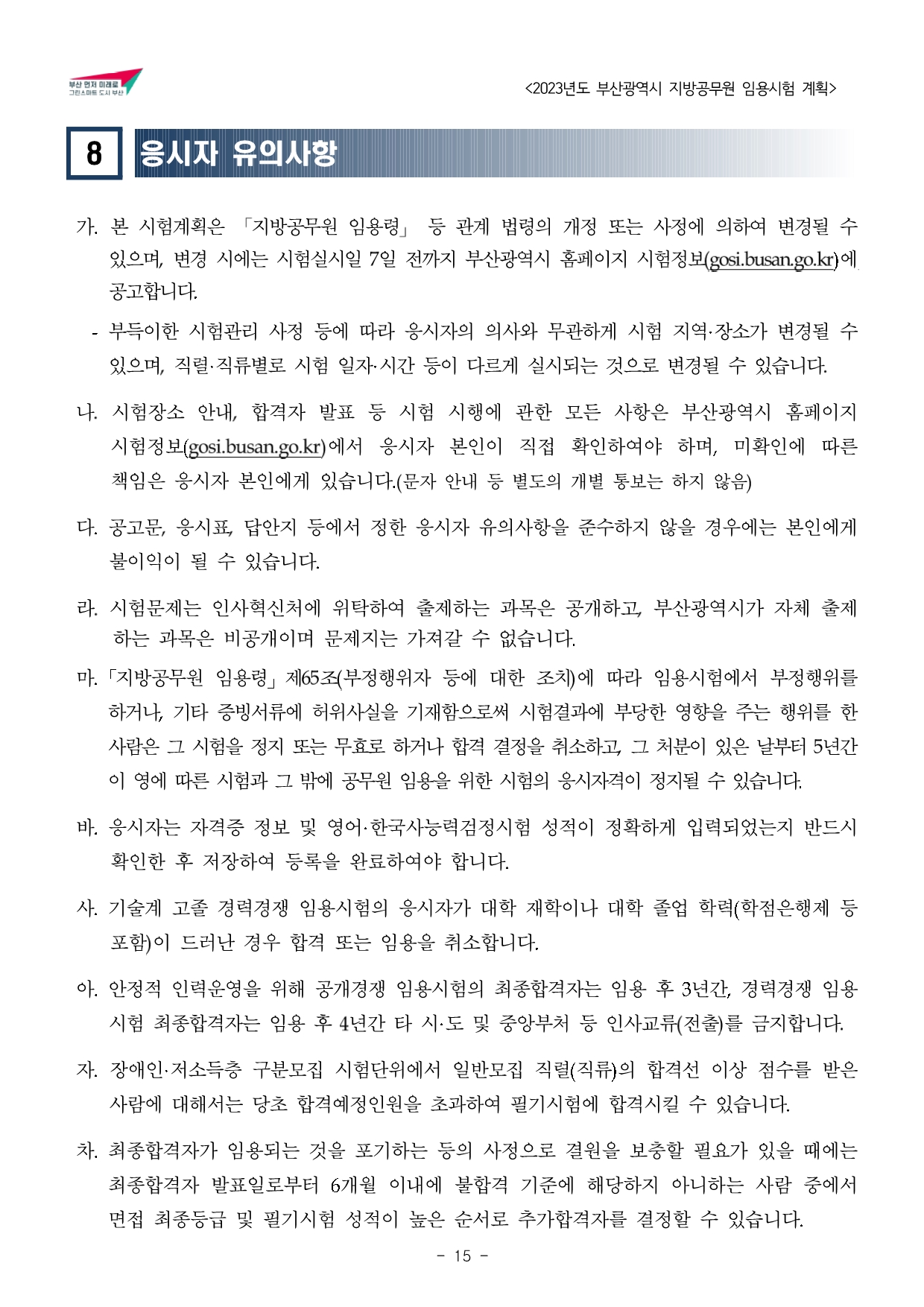 2023년도 부산광역시 지방공무원 임용시험 계획 공고문(게시).hwp
