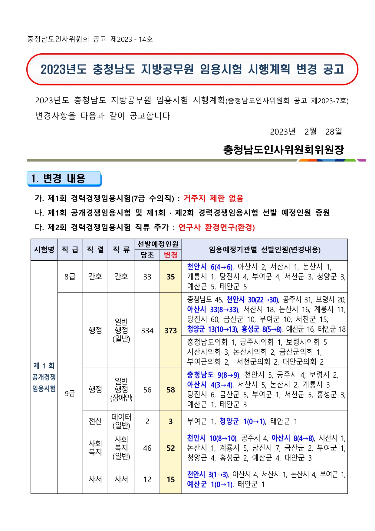 | 2023년 인천광역시 공무원시험 계획 공고 (0) | 2023.02.15 |