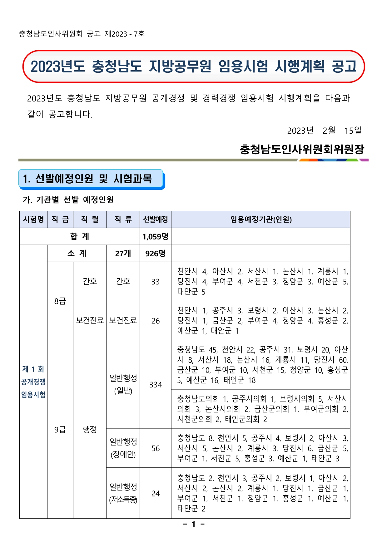 | 2023년 강원도 공무원 시험 계획 공고 (0) | 2023.02.14 |