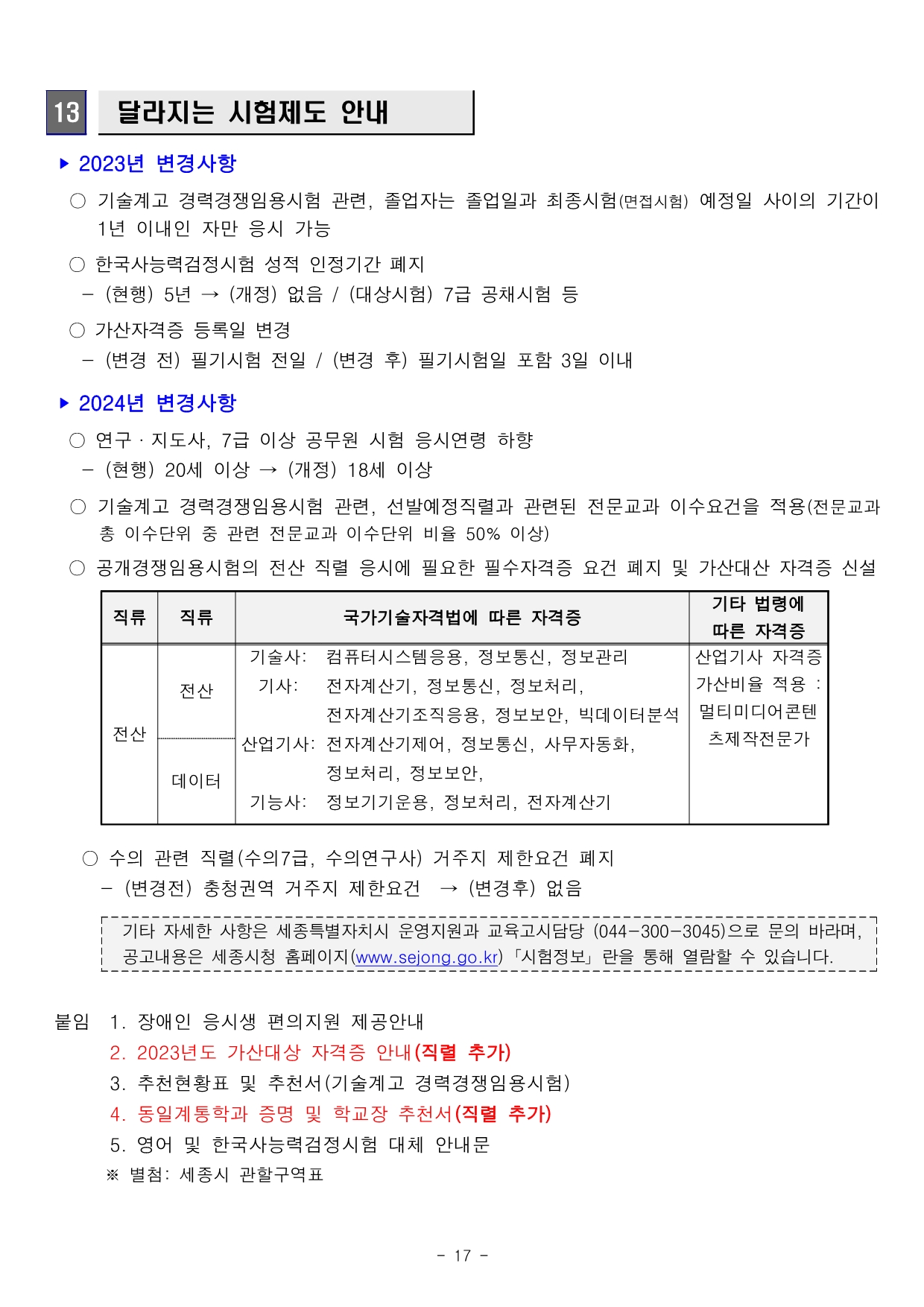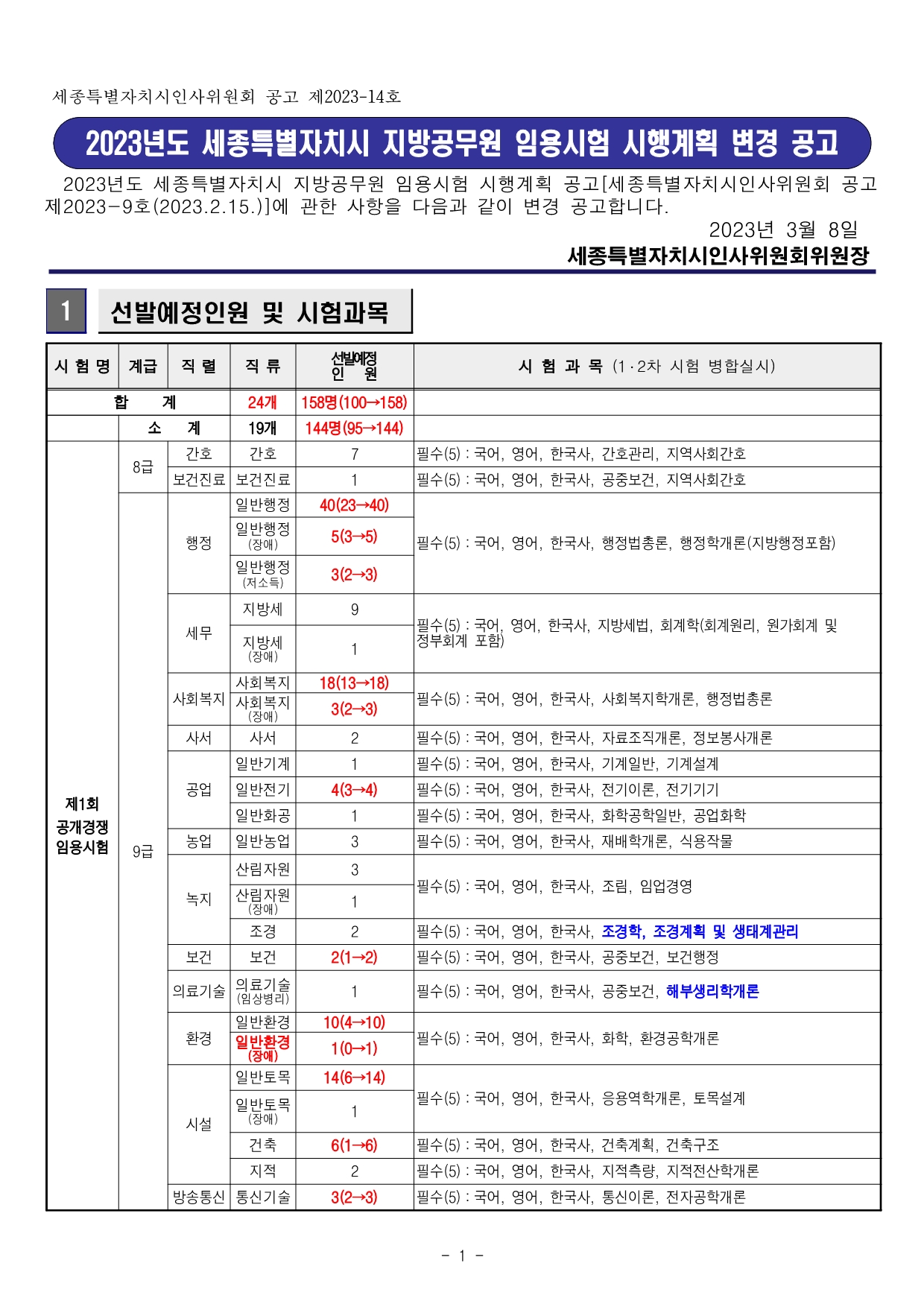 230308 2023년도 세종특별자치시 지방공무원 임용시험 시행계획 변경 공고(전부).hwp