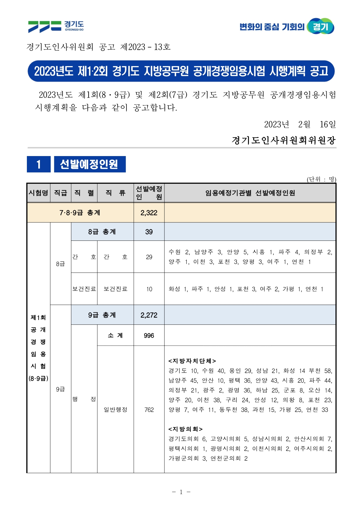 | 2023년 경기도 경력경쟁 공무원 시험 계획 공고 (0) | 2023.02.16 |