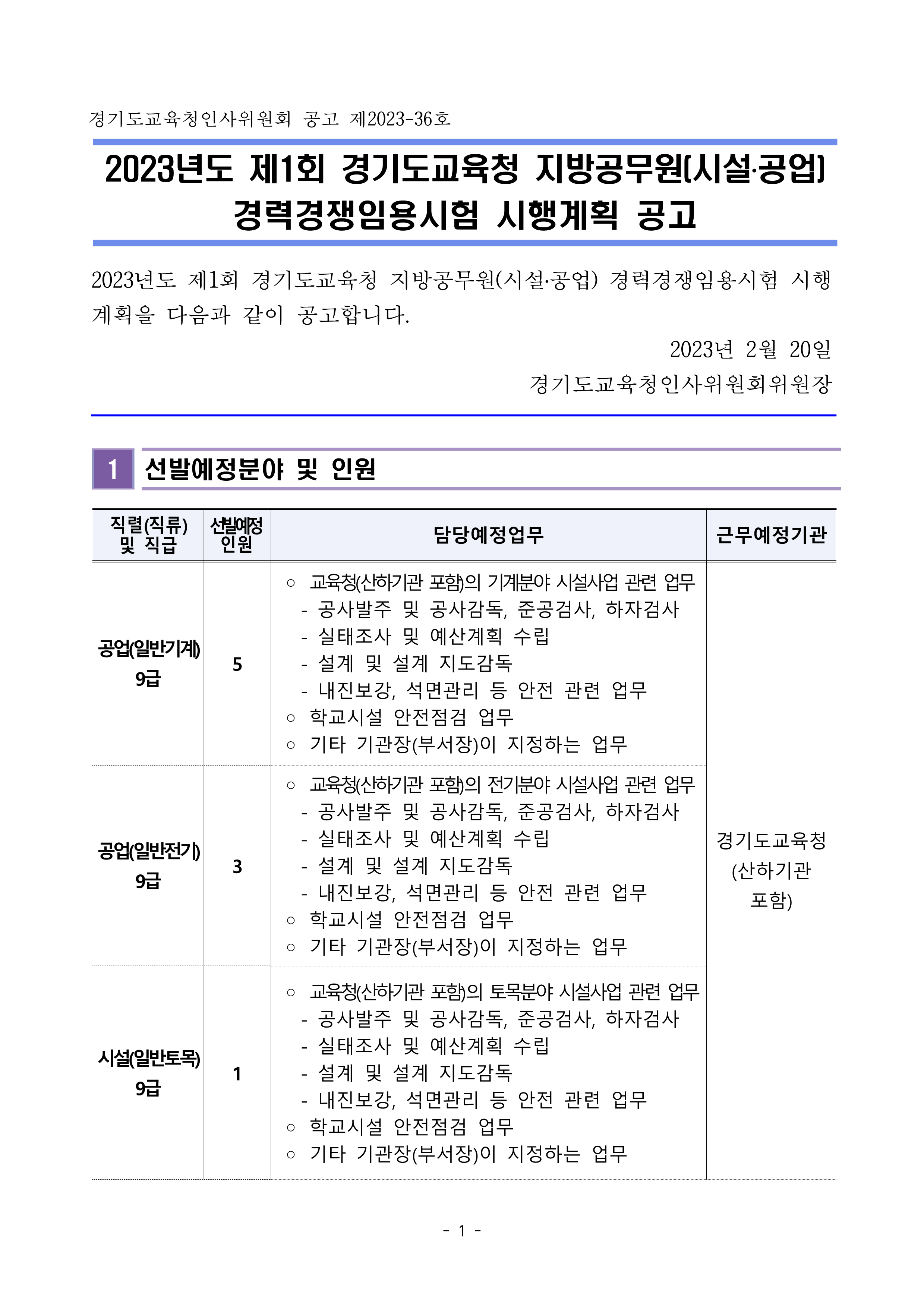 | 2023년 인천광역시교육청 경력경쟁 공무원 시험 계획 공고(필기시험없음) (0) | 2023.02.23 |