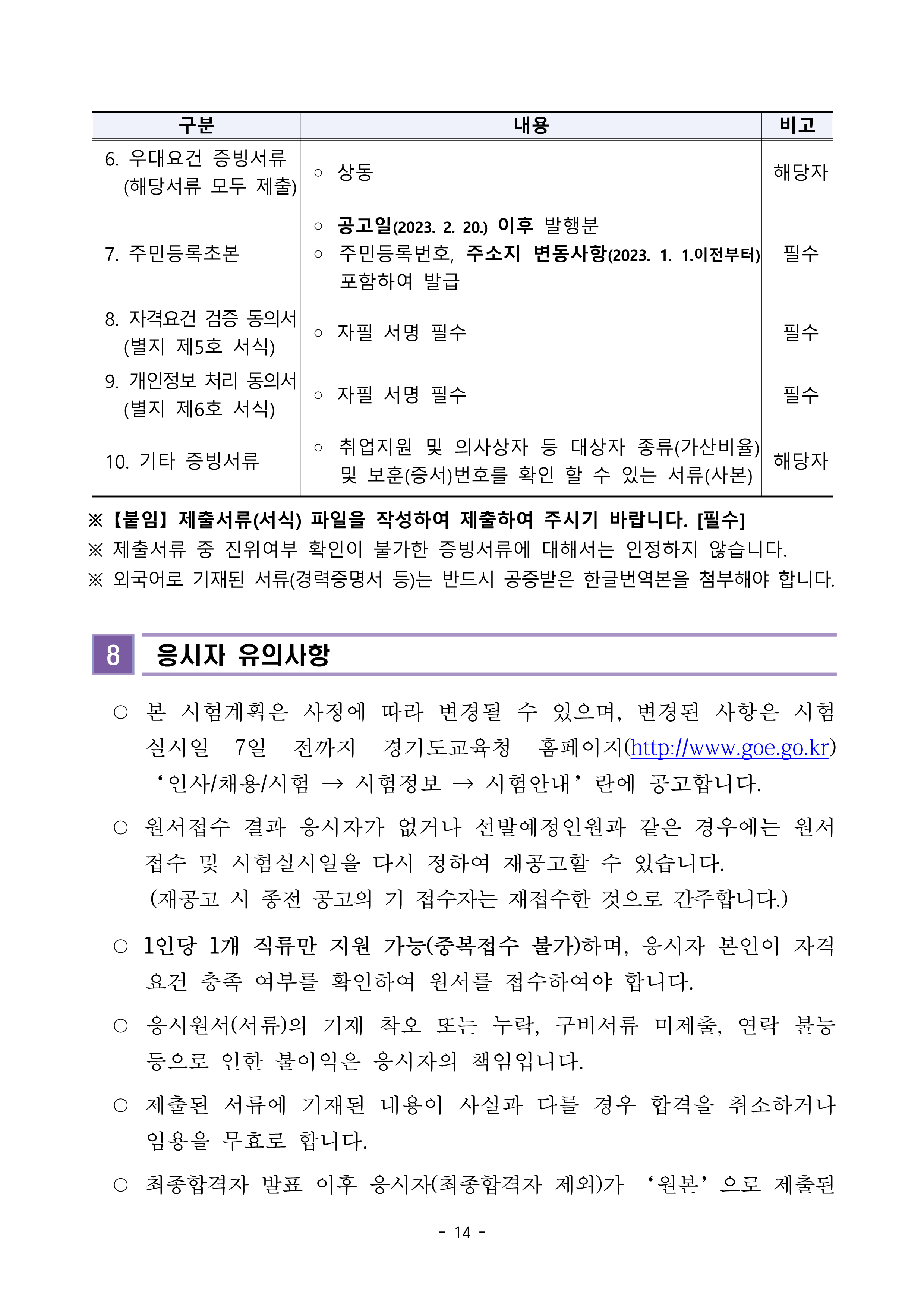 [붙임] 2023년도 제1회 경기도교육청 지방공무원 경력경쟁임용시험 응시자 제출서류(서식).hwpx