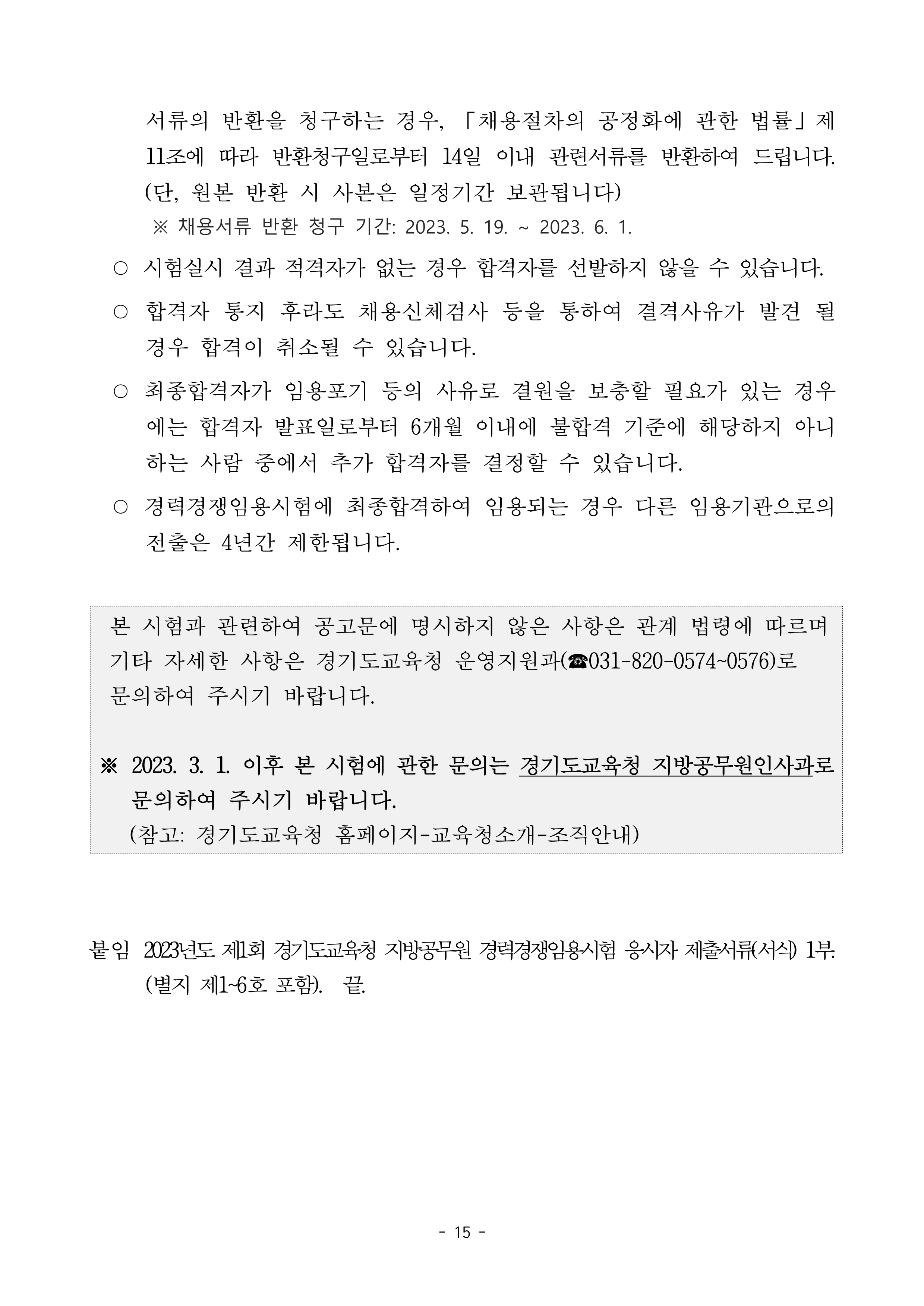 ★2023년도 제1회 경기도교육청 지방공무원 경력경쟁임용시험 공고문(홈페이지).hwpx