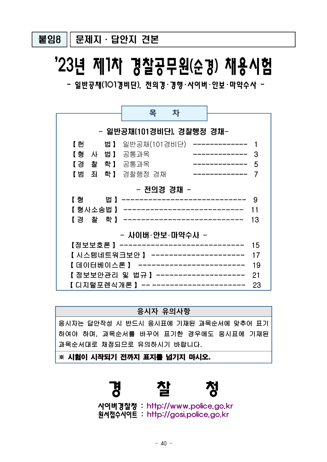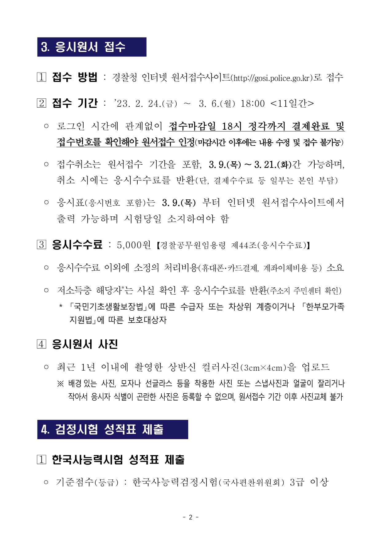 경찰공무원시험 2023년 경찰 1차 시험(순경공채) 시험 계획 공고 by 삶의시인 2023. 2. 24. 728x90 반응형 '23년 제1차 경찰공무원 공채 공고문.hwp 1.84MB 반응형 728x90 반응형 공유하기 게시글 관리 YouTube 지식인TV 댓글