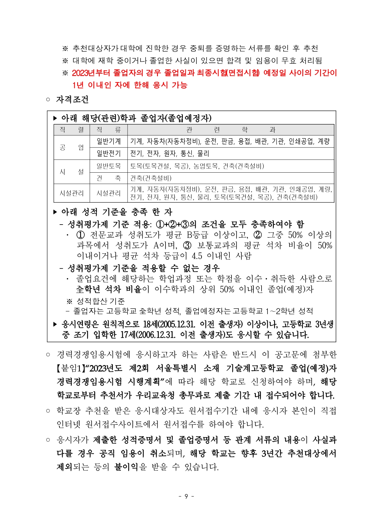 (붙임1)+2023년도+제2회+서울특별시+소재+기술계고등학교+졸업(예정)자+경력경쟁임용시험+시행계획 (1).pdf