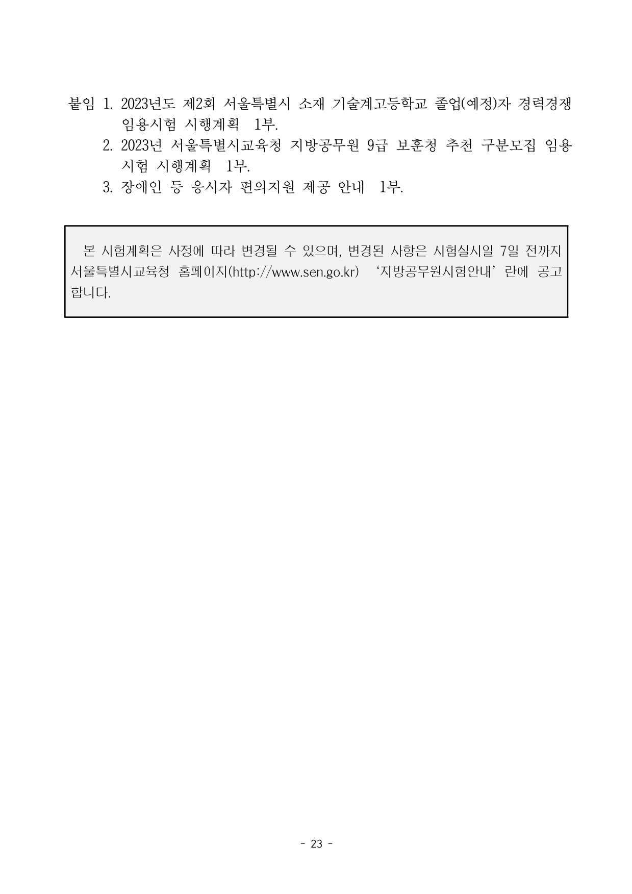 (붙임2)+2023년도+서울특별시교육청+지방공무원+9급+보훈청+추천+구분모집+임용시험+시행+계획 (1).pdf