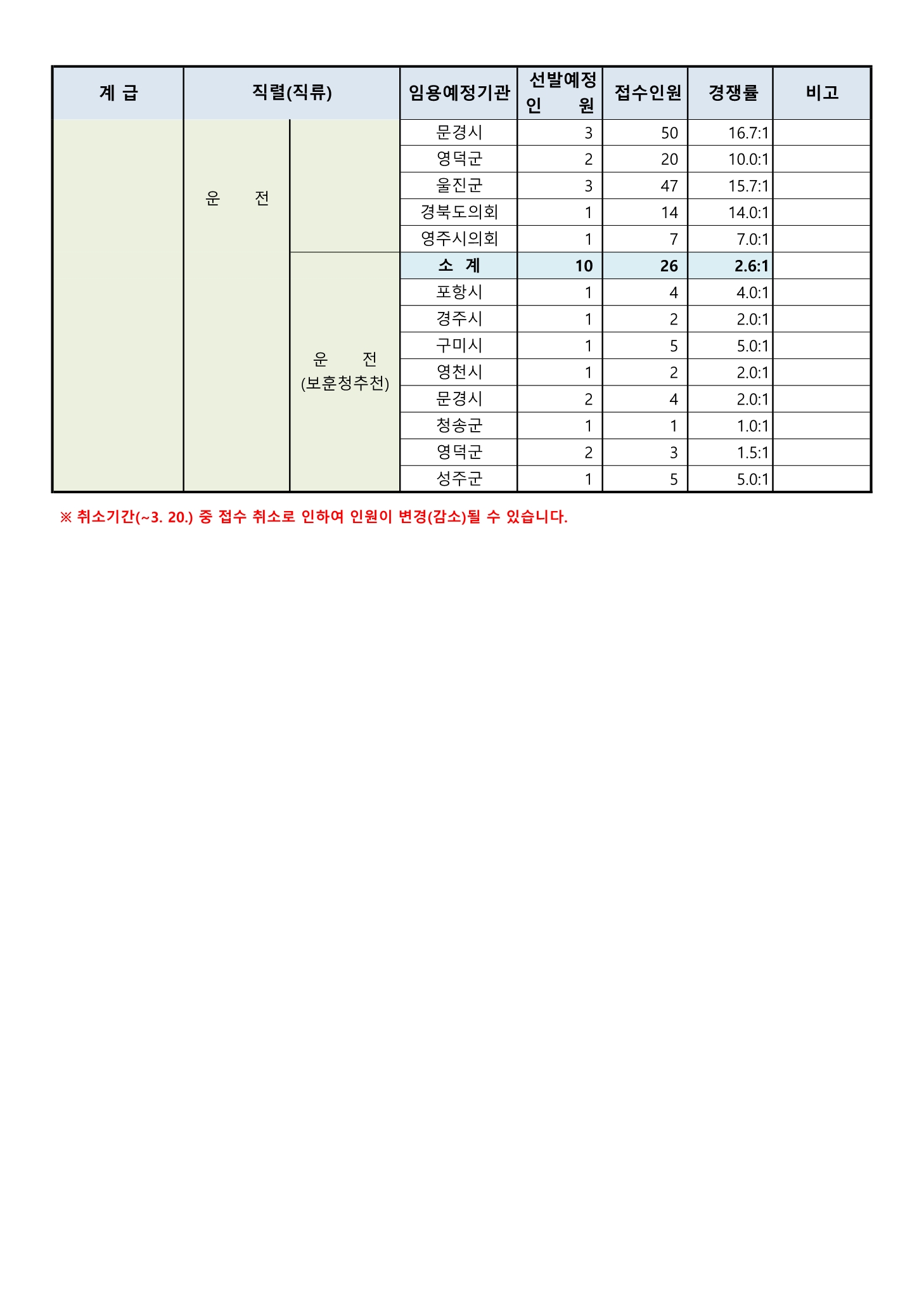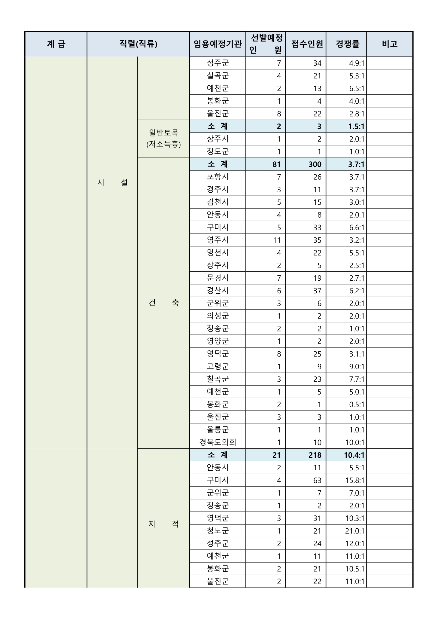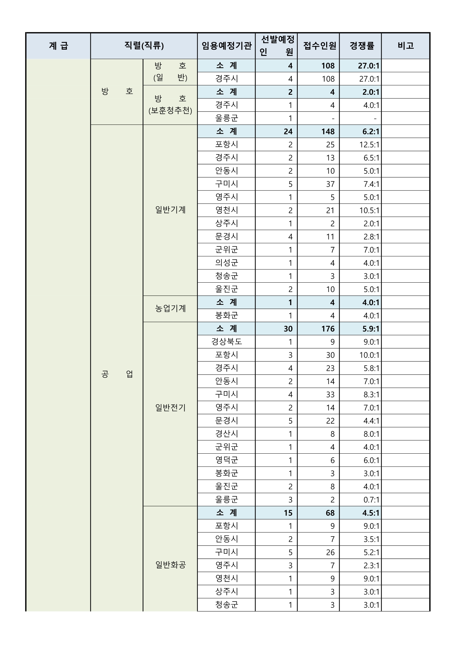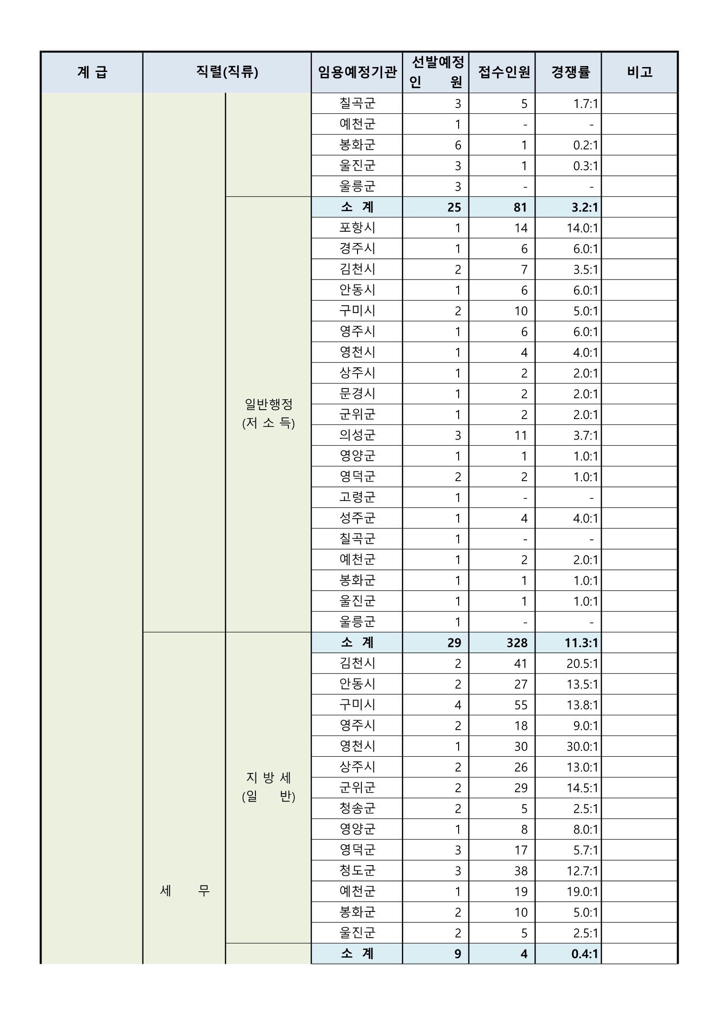 | [경쟁률]2023년 강원도 9급 공무원 시험 경쟁률(8급포함) (0) | 2023.03.21 |