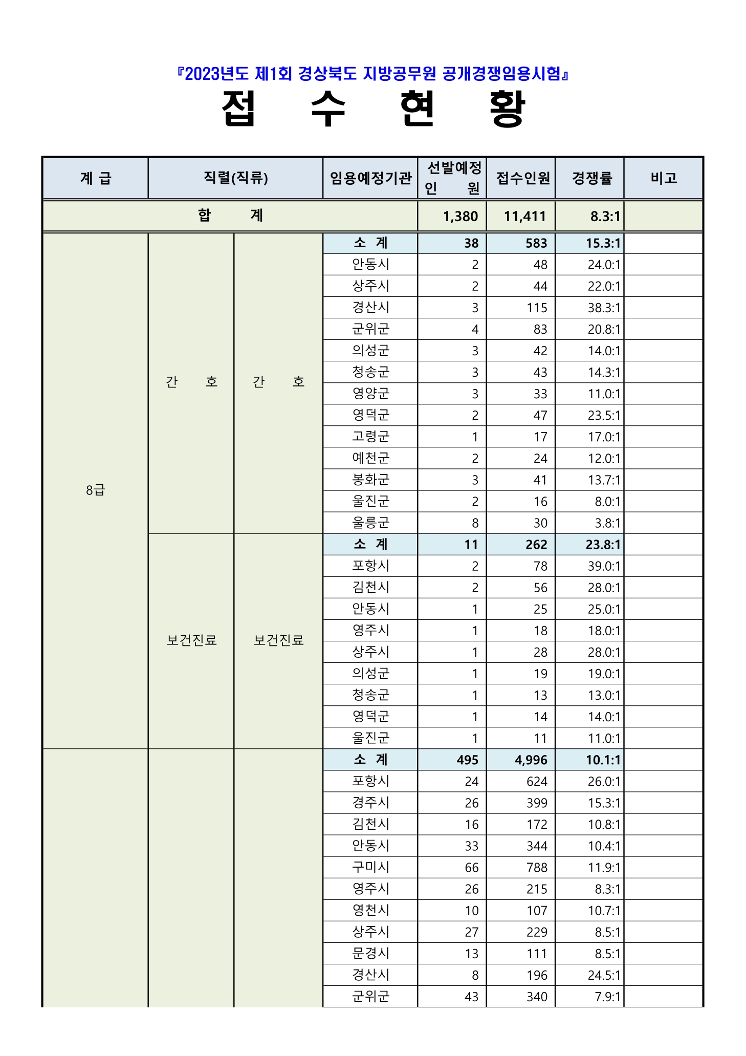 | [경쟁률]2023년 대구광역시 9급 공무원 시험 경쟁률(8급포함) (0) | 2023.03.21 |