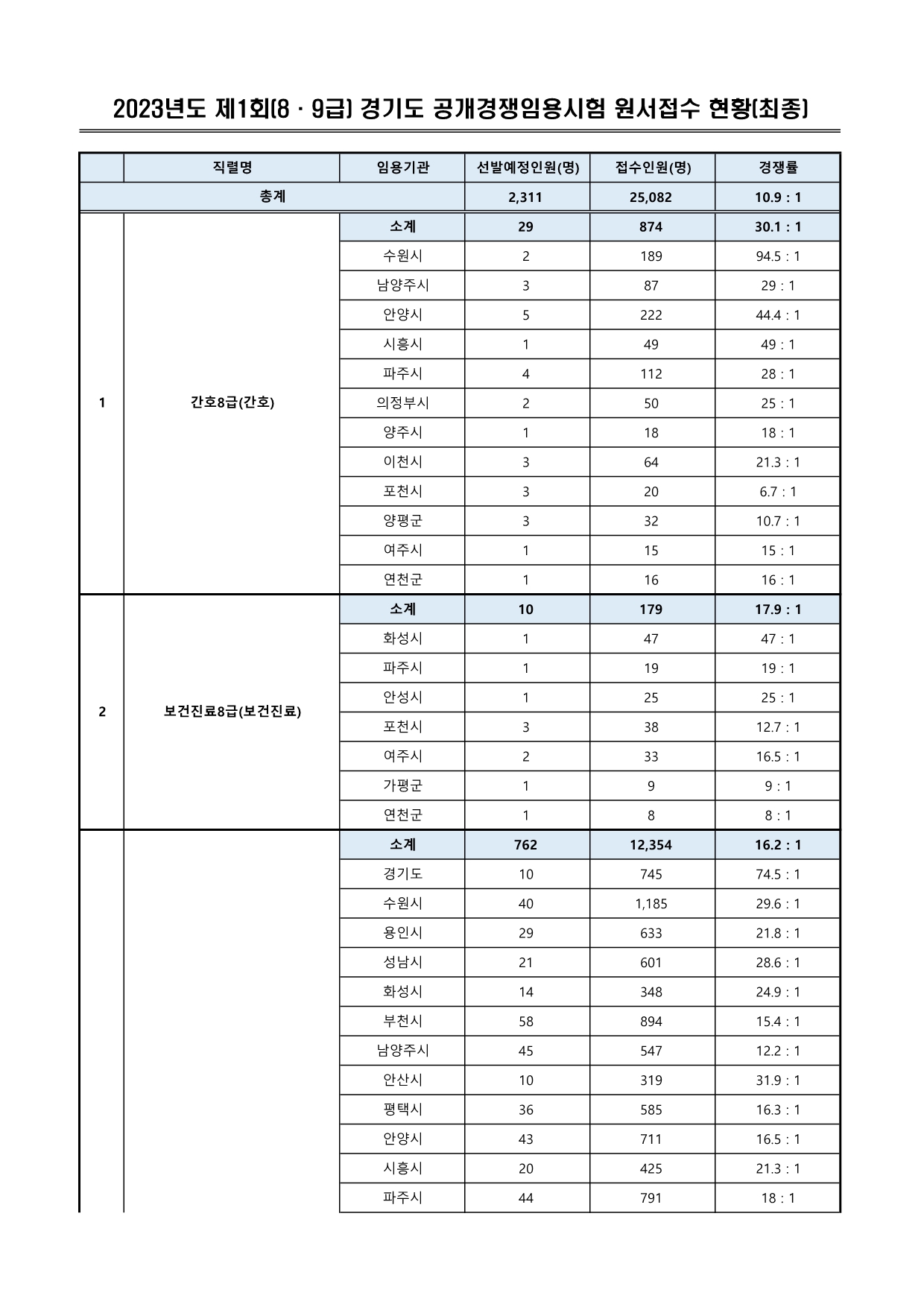 | [경쟁률]2023년 전라북도 9급 공무원 시험 경쟁률(8급포함) (0) | 2023.03.22 |