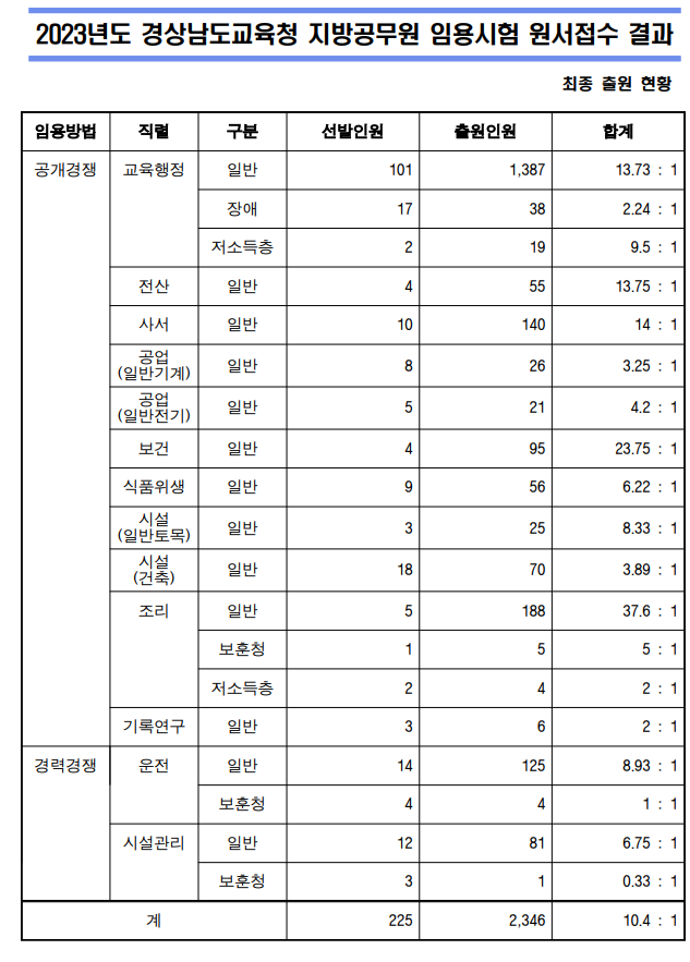 | [경쟁률]2023년 경상남도 9급 공무원시험 경쟁률(8급포함) (0) | 2023.03.21 |