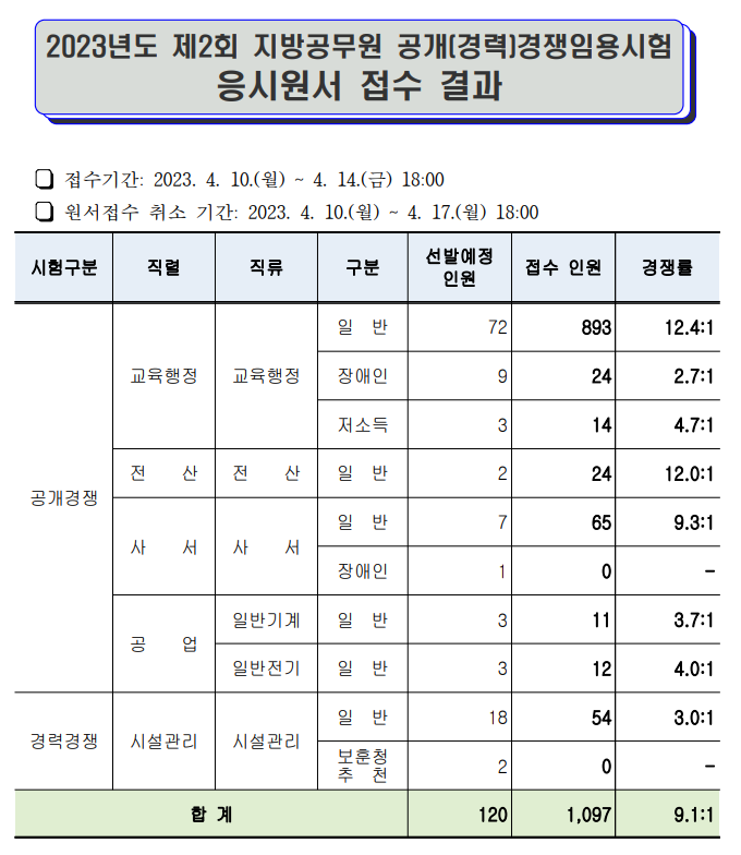 | 2023년 전라북도 교육청 공무원 시험 경쟁률 (0) | 2023.04.18 |