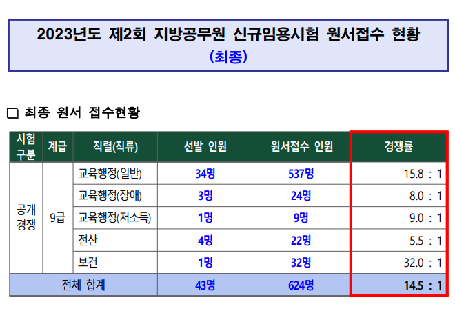 | 2023년 충청북도 교육청 공무원 시험 경쟁률 (0) | 2023.04.20 |