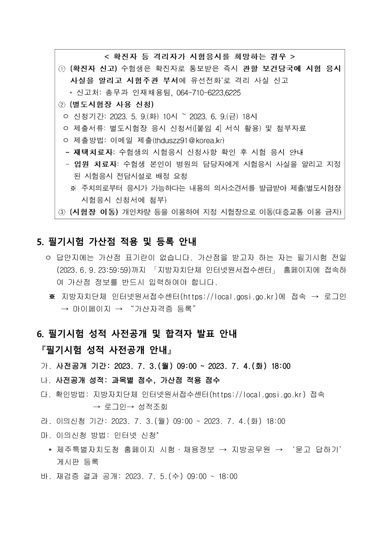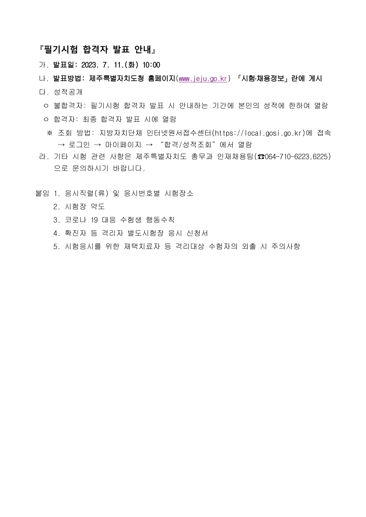 02.(별첨1) 2023년도 제3회 공개경쟁임용 필기시험 편의지원 검증결과 안내(게시).hwp