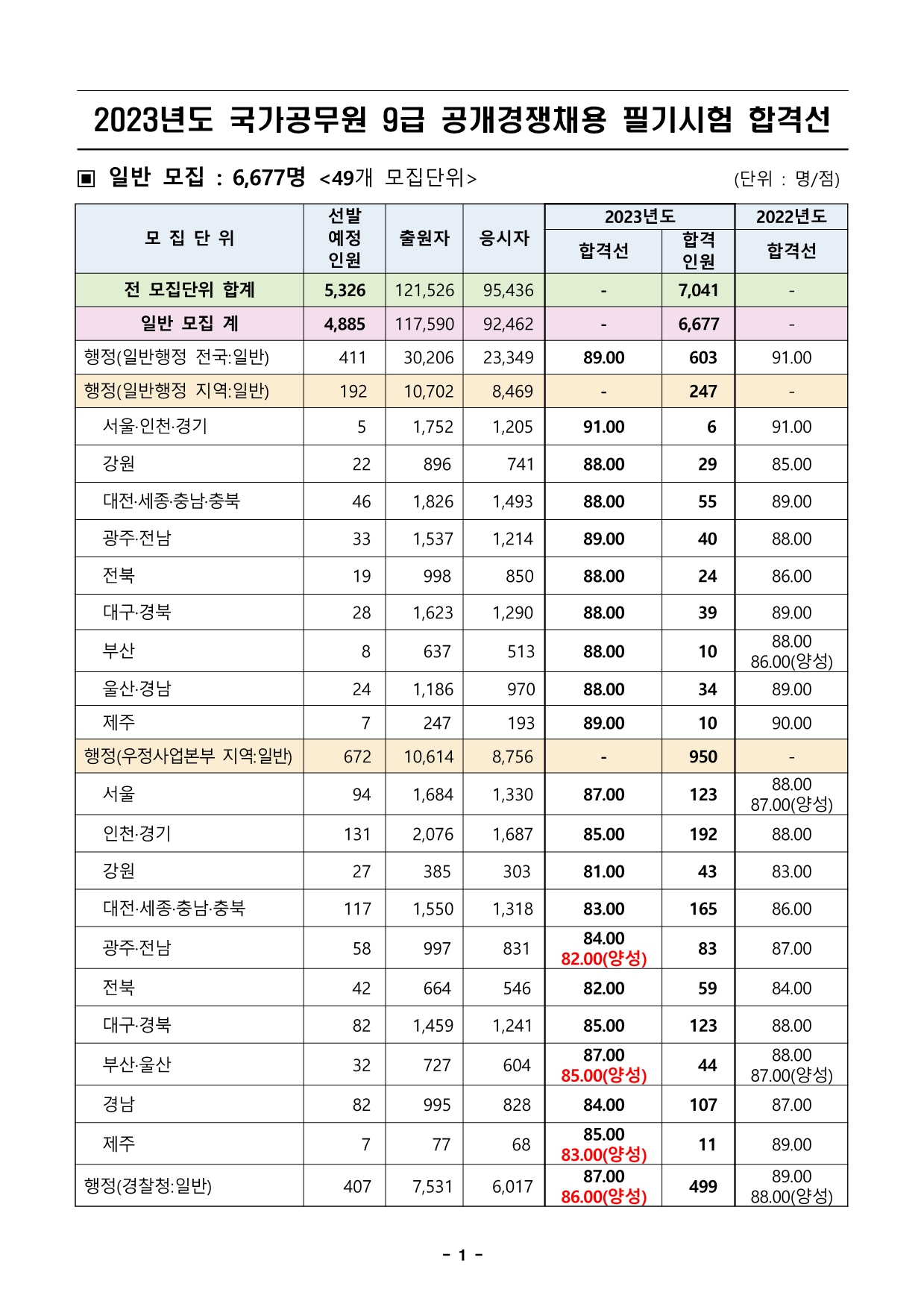 | 2023년 국가직 9급 공무원 시험 응시율&실질경쟁률 (0) | 2023.04.26 |