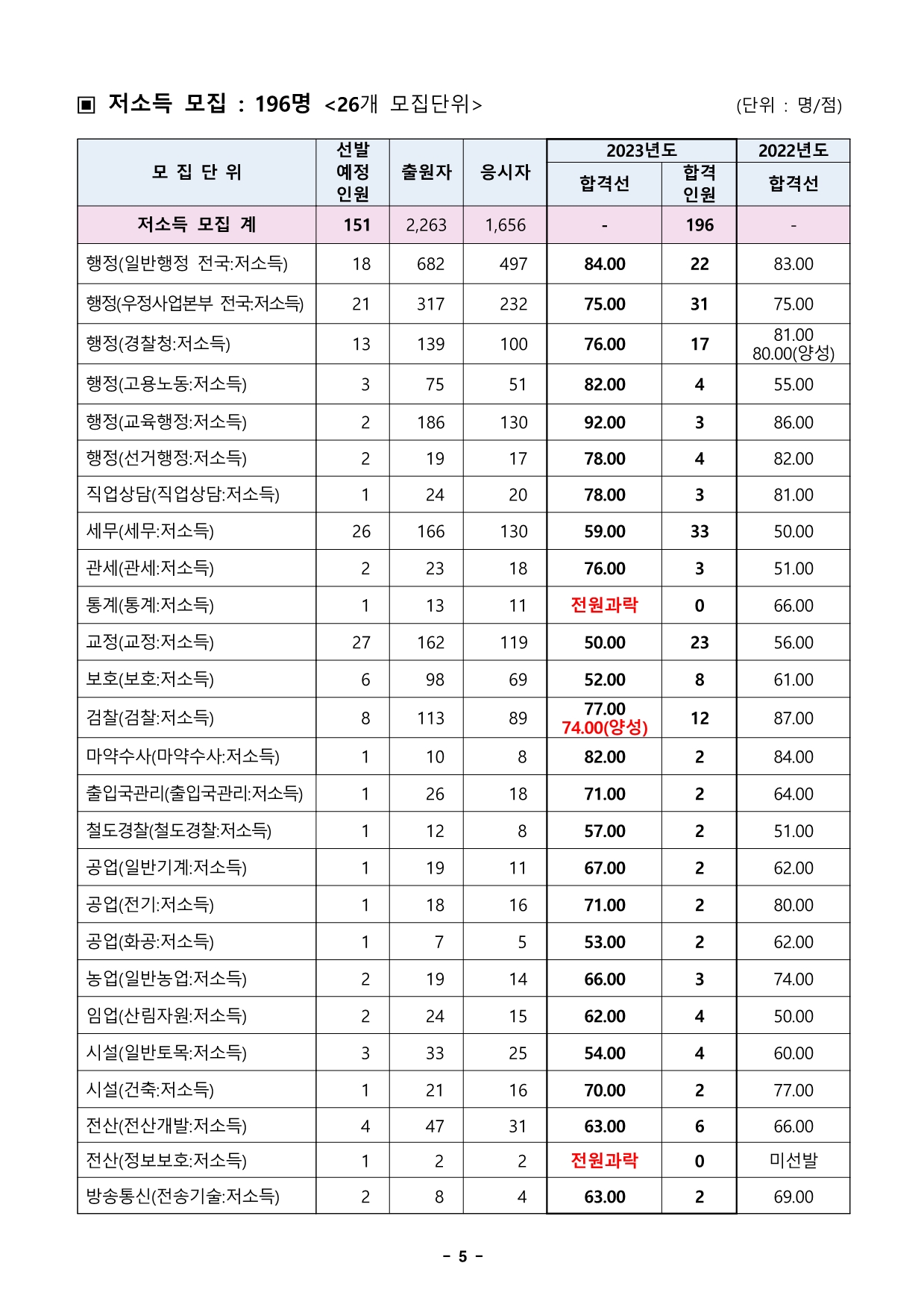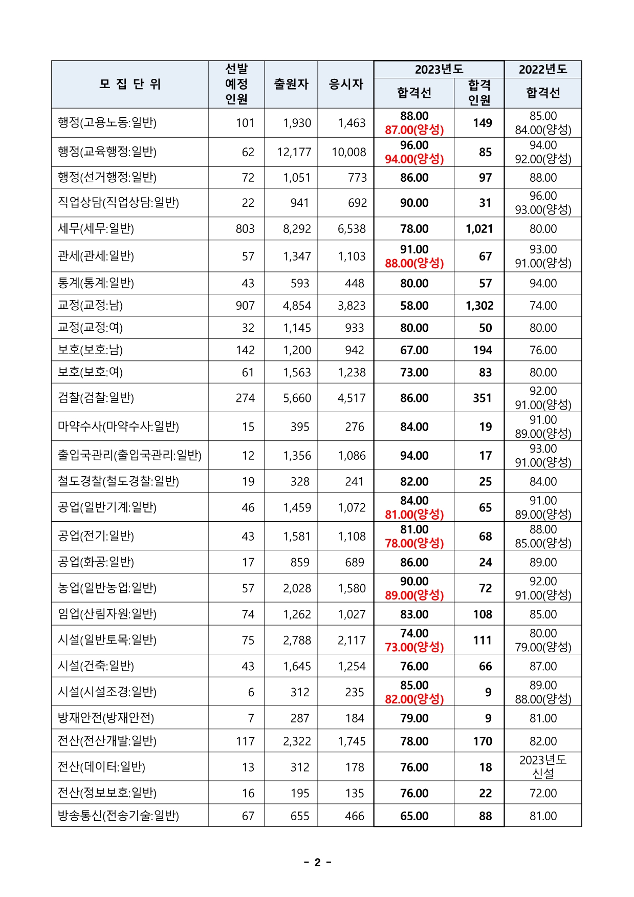 공무원 시험 공고&경쟁률&합격선(2019~2023)