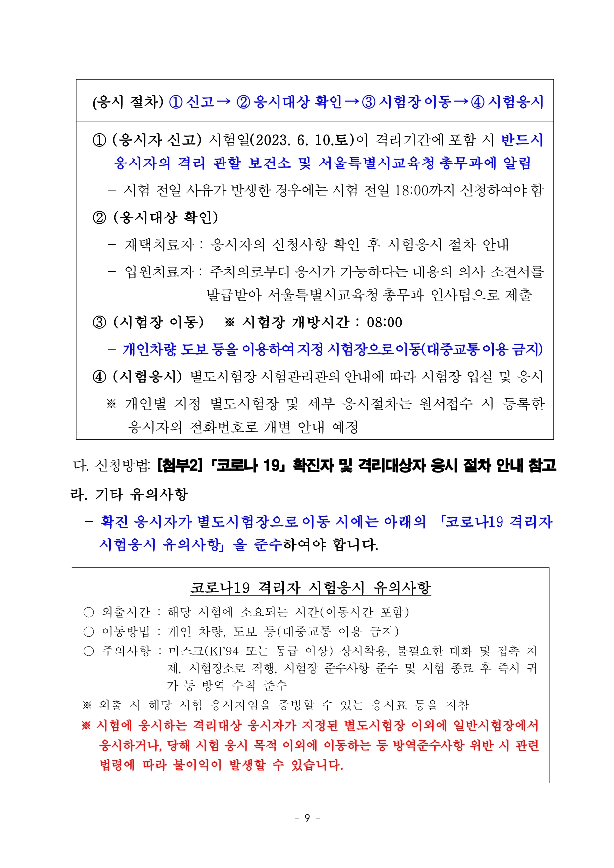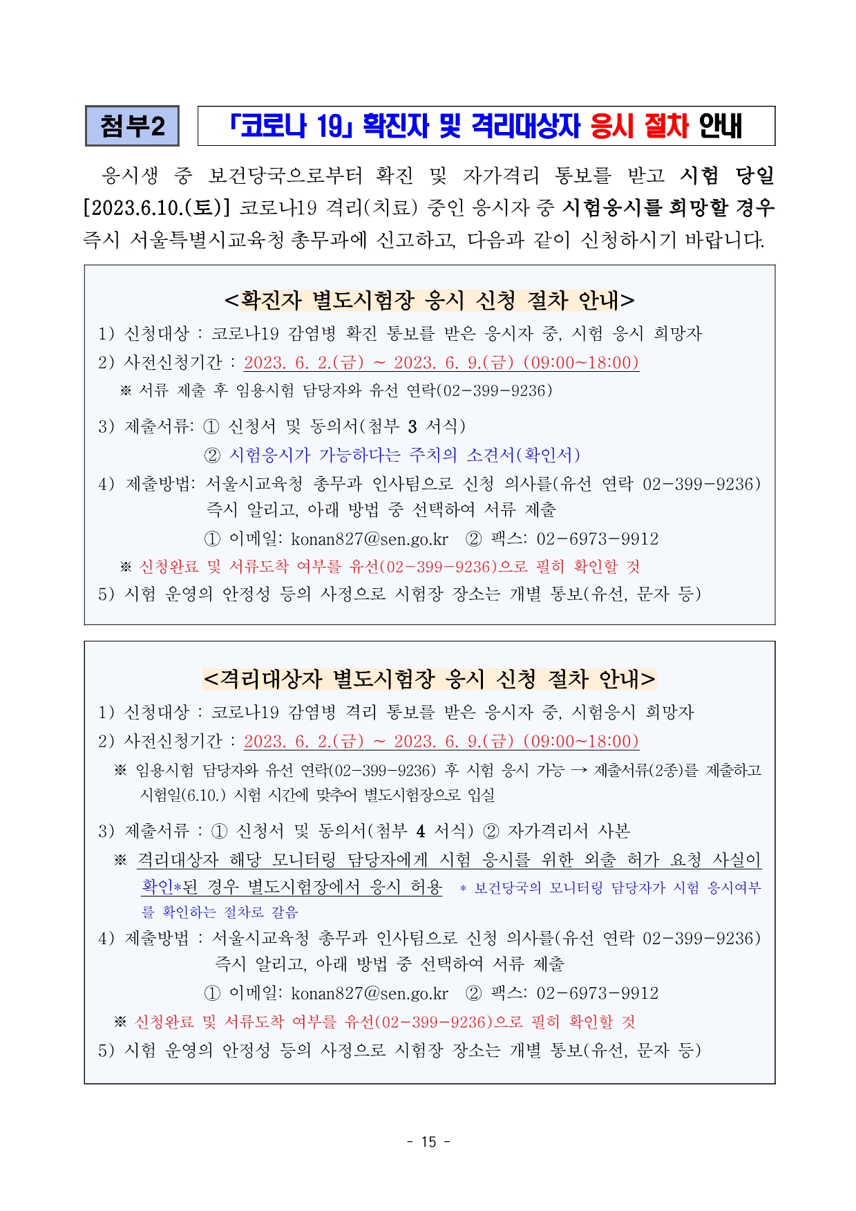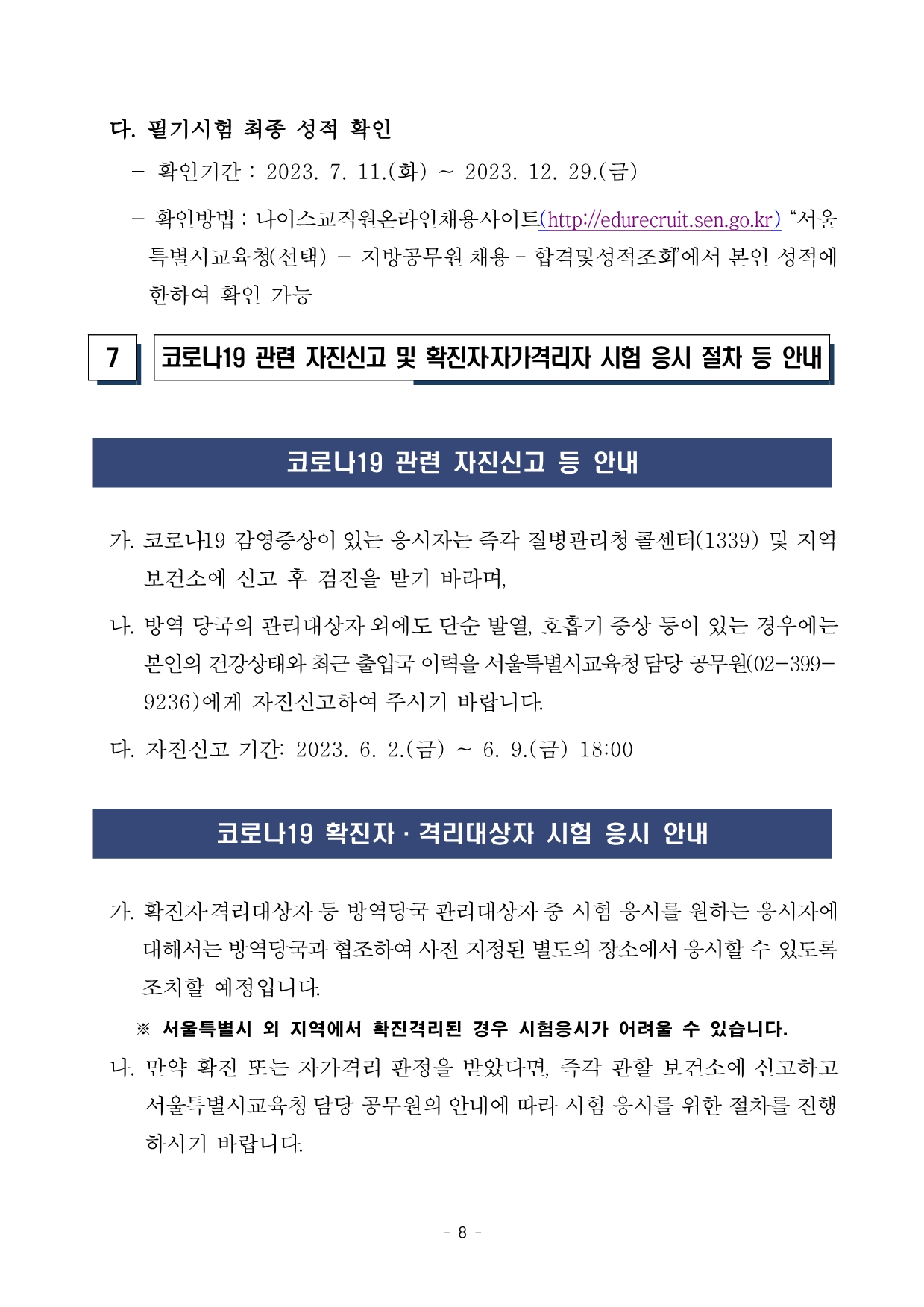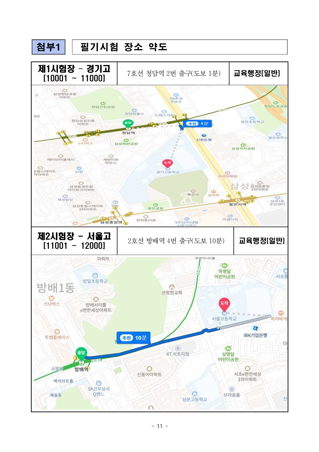 (공고) 2023년도 제1회 서울특별시교육청 지방공무원 9급 공개경력경쟁임용 필기시험 시간 및 장소 공고.hwp