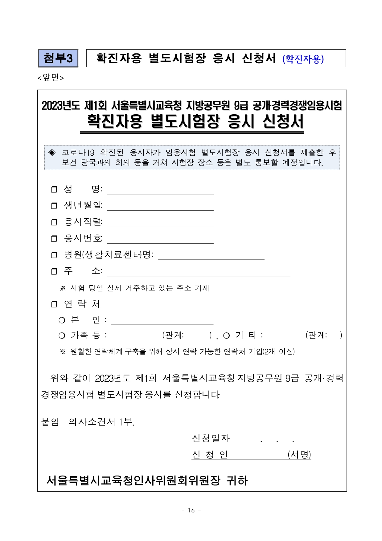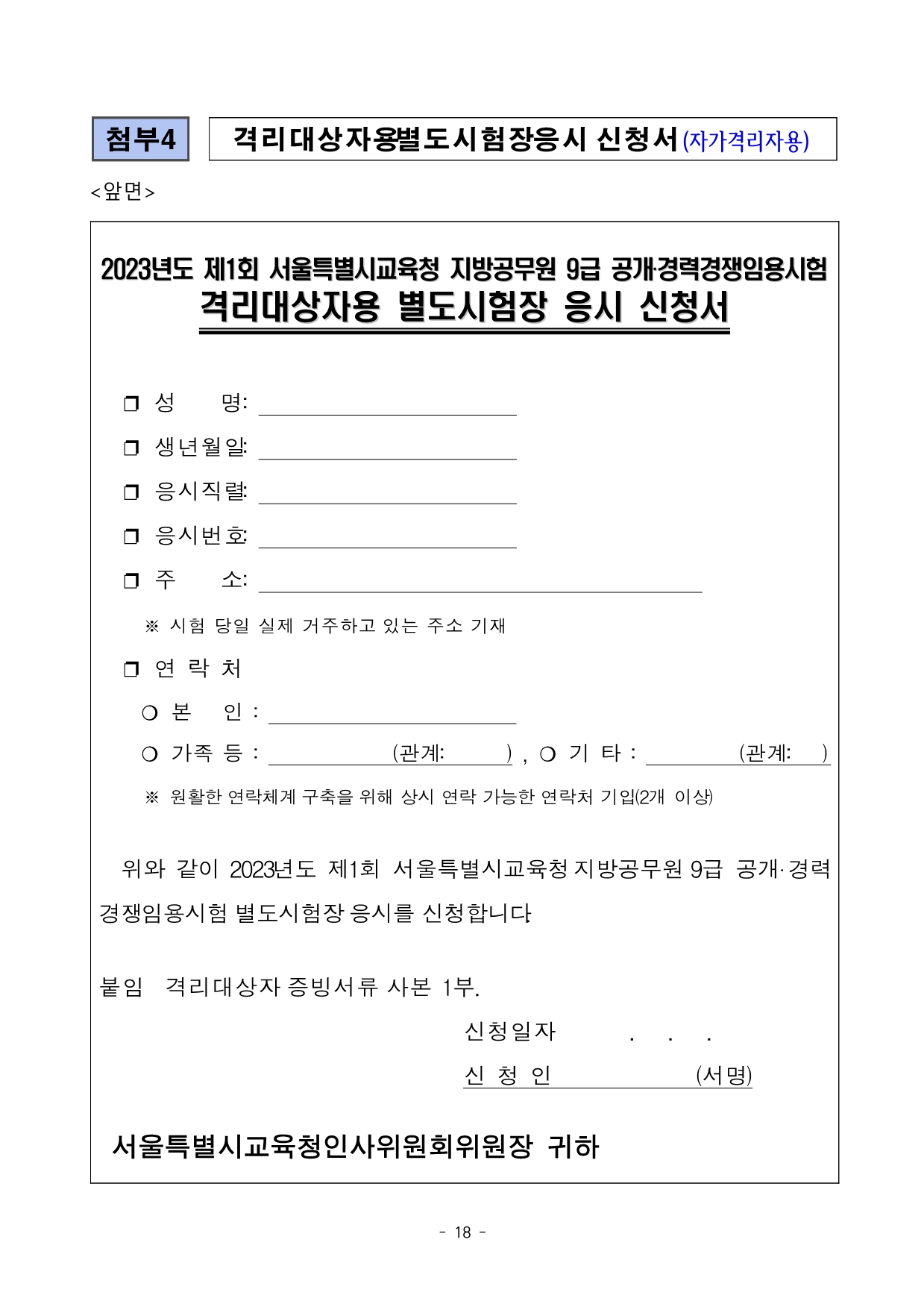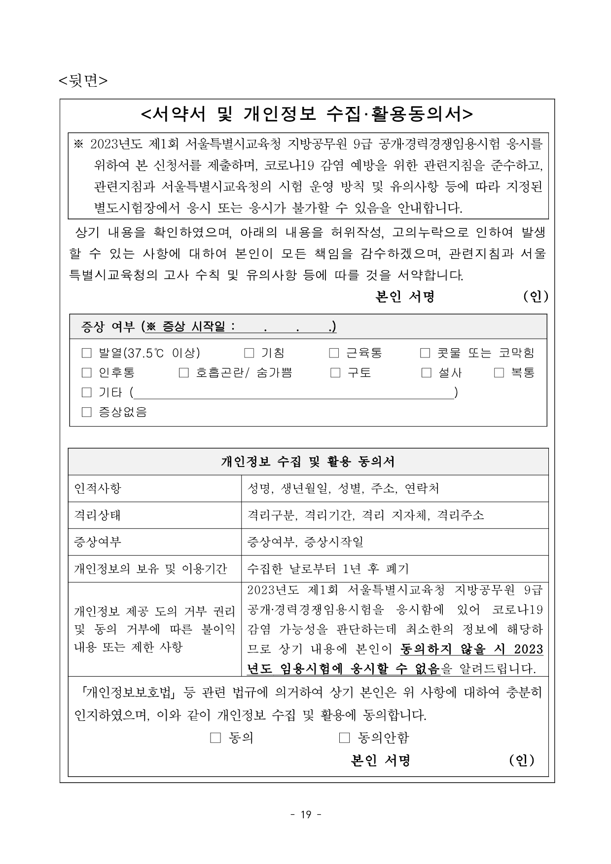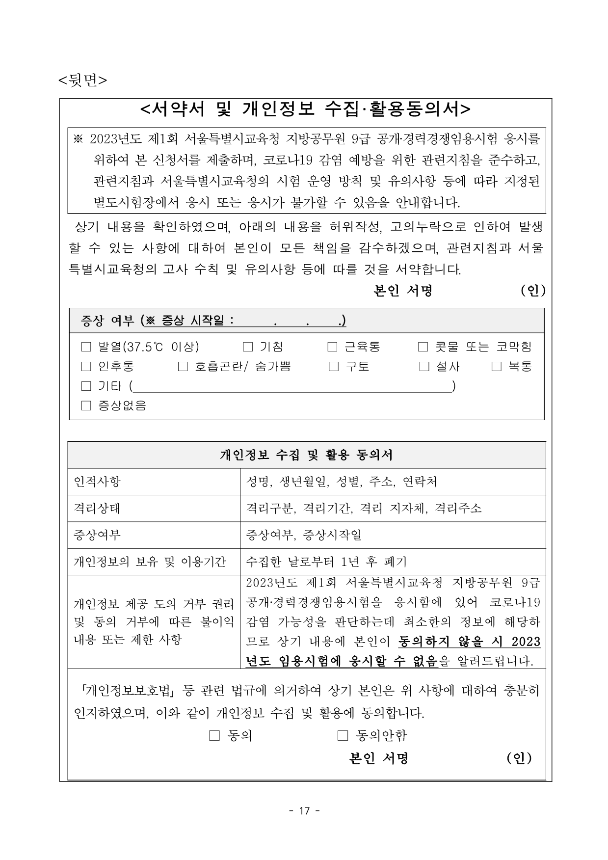 (공고) 2023년도 제1회 서울특별시교육청 지방공무원 9급 공개경력경쟁임용 필기시험 시간 및 장소 공고.pdf