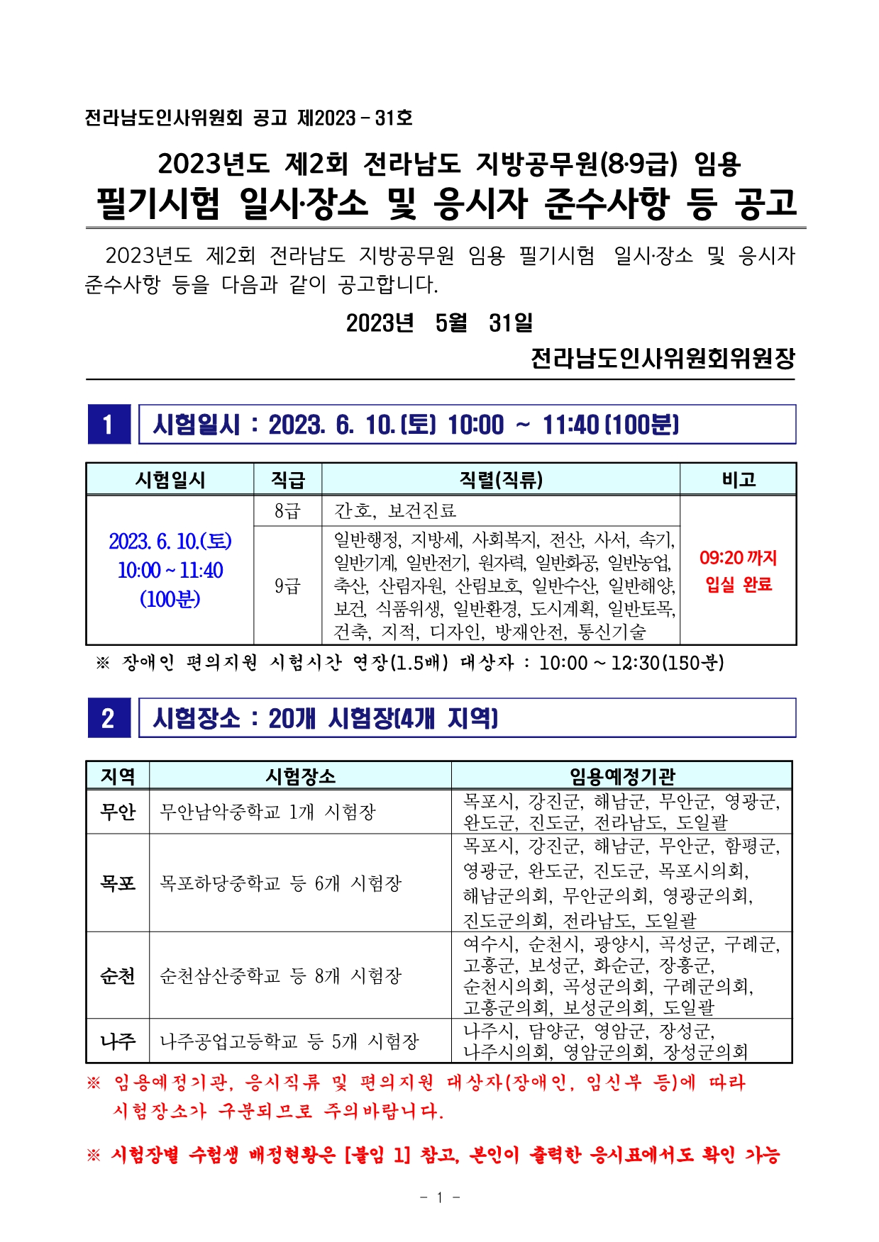 2023년도 제2회 전라남도 지방공무원 임용 필기시험 장소 공고문.pdf