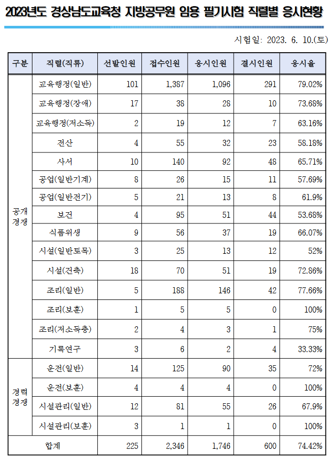 | 2023년 경상북도교육청 공무원 시험 응시율 (0) | 2023.06.12 |