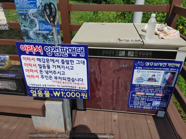 상주상품교에는 유명한 얼음물 판매대가 있다. 계좌이체도 가능하다. 이른 시간이지만 꽉꽉 차있다.