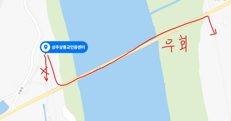 상주상품교를 지나는데 여기가 문제다. 원래 코스대로 간다면 지옥 같은 업힐을 만나야 했다.