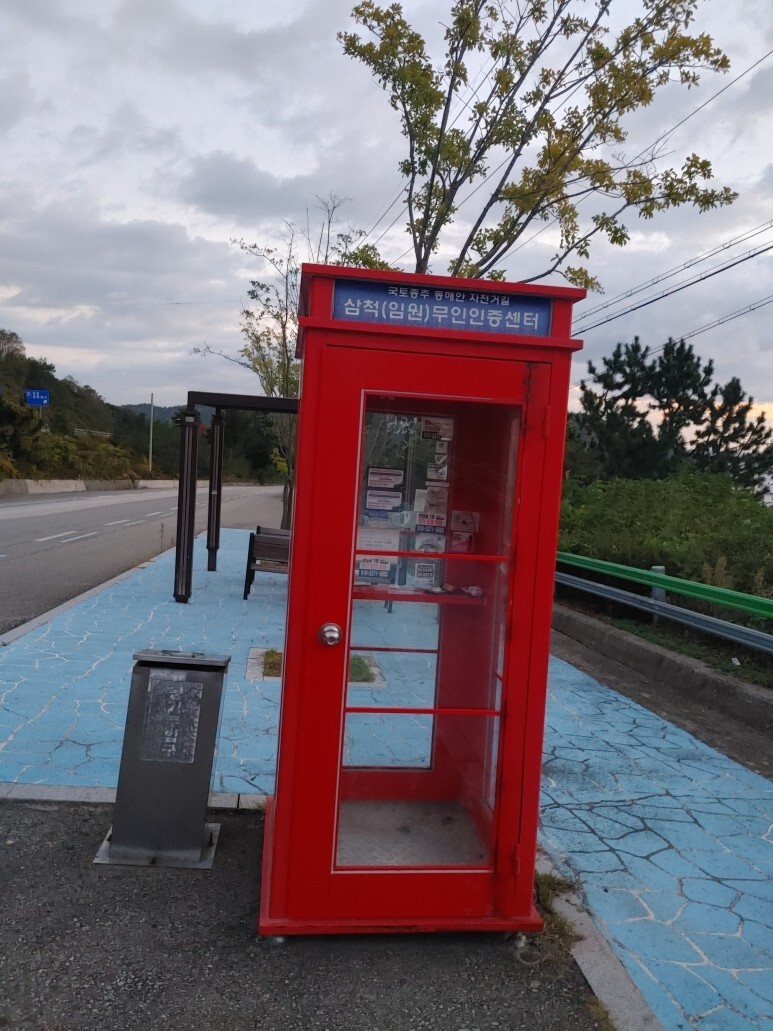 문제는 경북구간 끝인 은어 다리부터 임원 구간인데 30킬로 이상인데 3시간 이상 걸리는데 그만큼 속도는 안 나고 업힐이 많다는 것이다. 경험한 사람들은 경치가~~~ 하는데 경치는 이미 많이 봤기 때문에 버스를 타고 가는 방법이 있다. 은어 다리에서 가까운 울진 버스터미널에 가면 3시 30분에 강릉(상행) 버스가 있다. 이것을 타면 임원으로 갈 수 있다. (하루 2번만 운행)