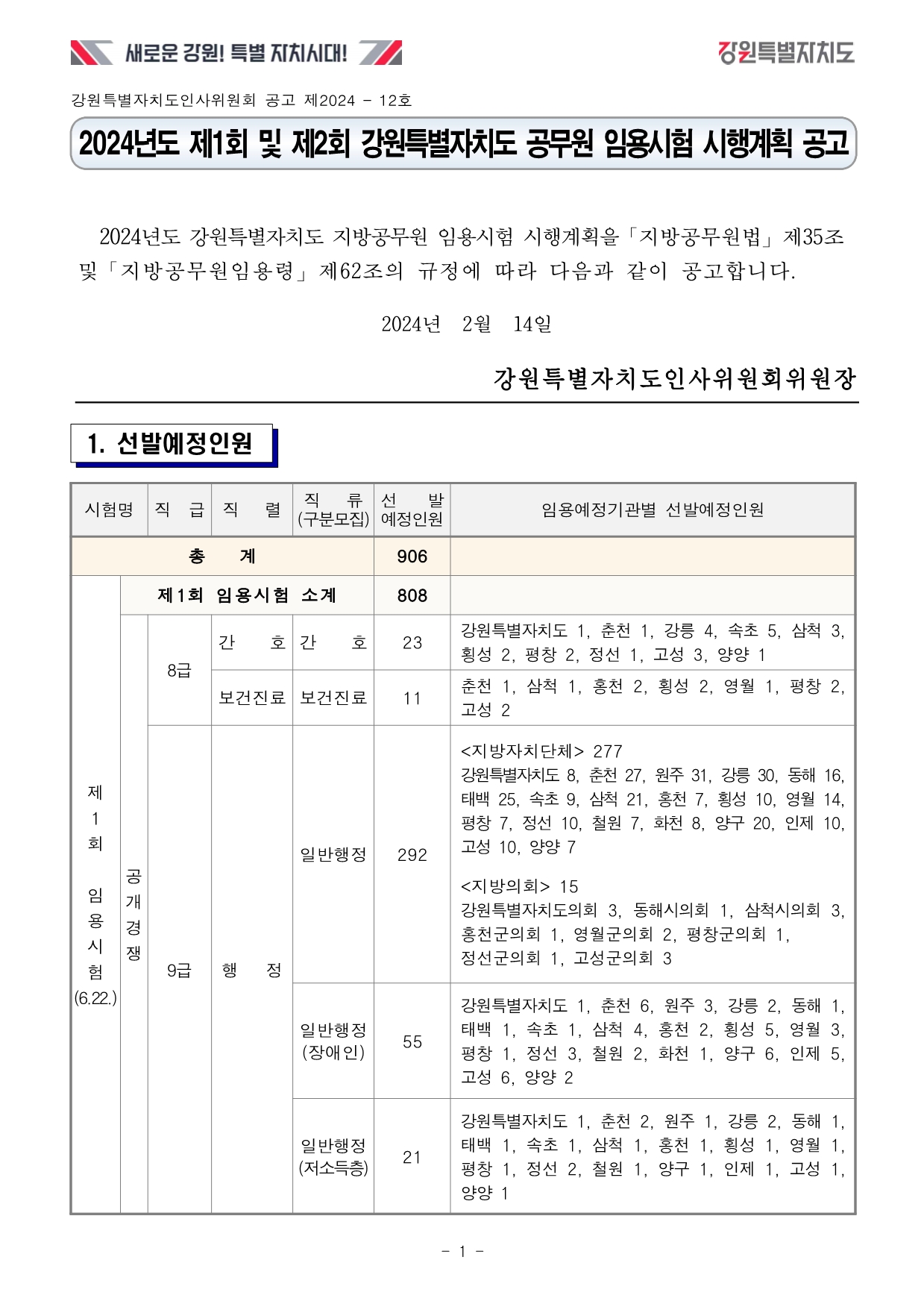 | 2024년 제주특별자치도 공무원 시험 계획 공고 (0) | 2024.02.07 |