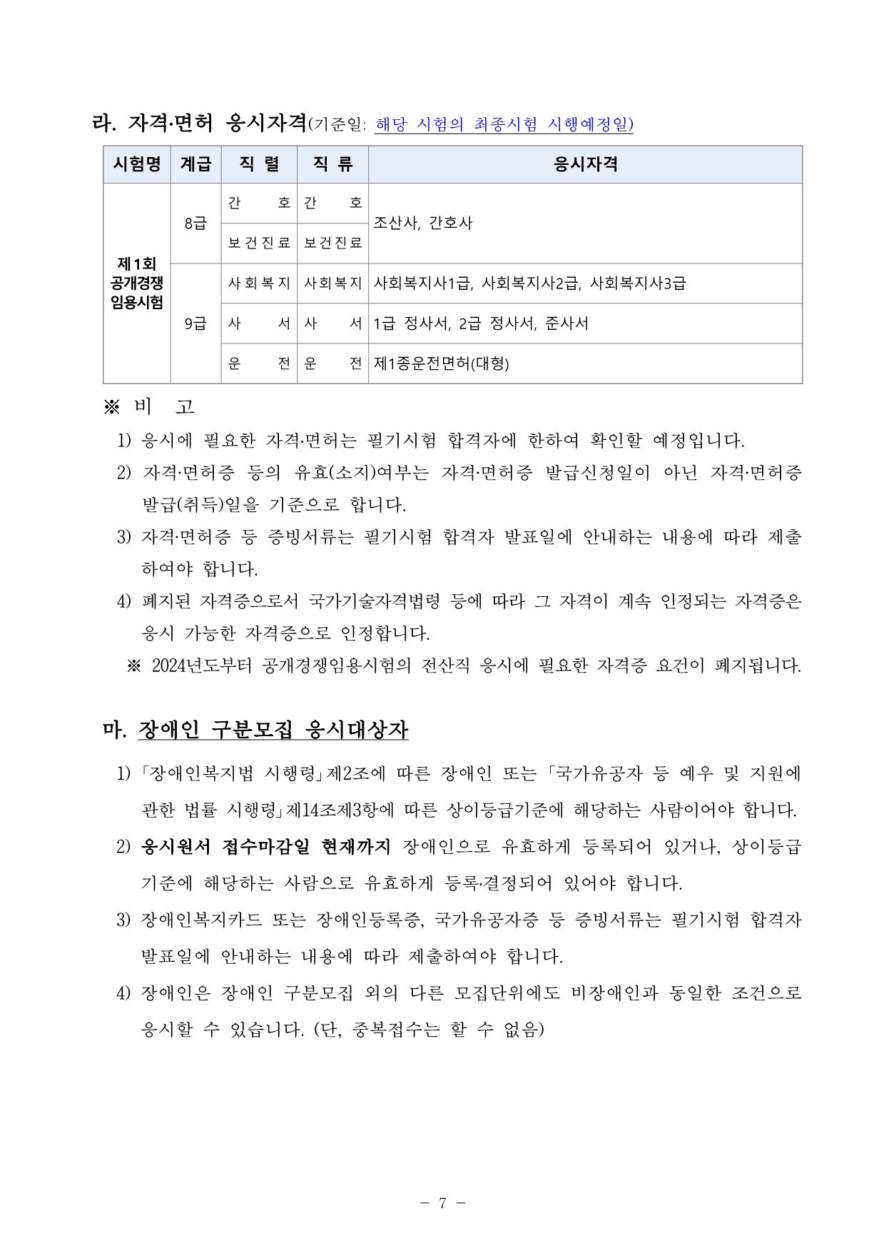 | 2024년 제주특별자치도 공무원 시험 계획 공고 (0) | 2024.02.07 |