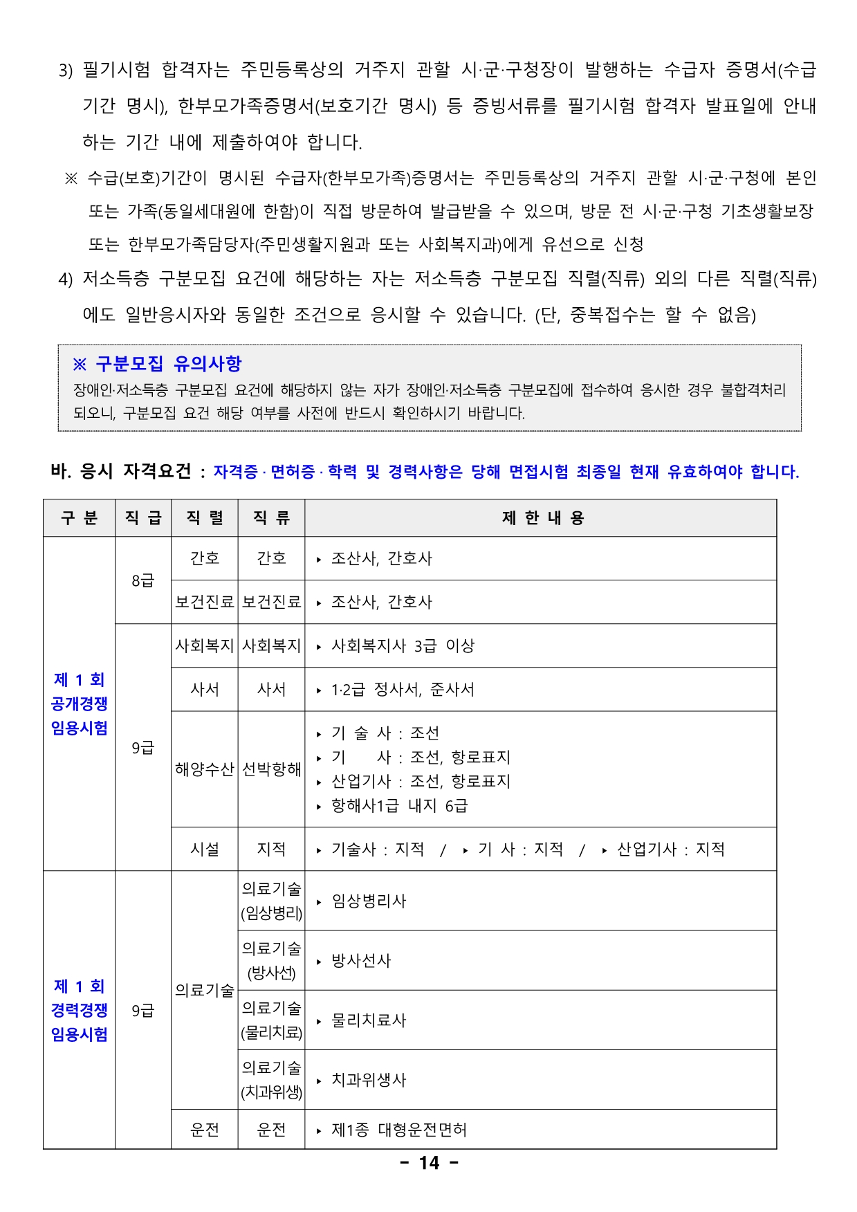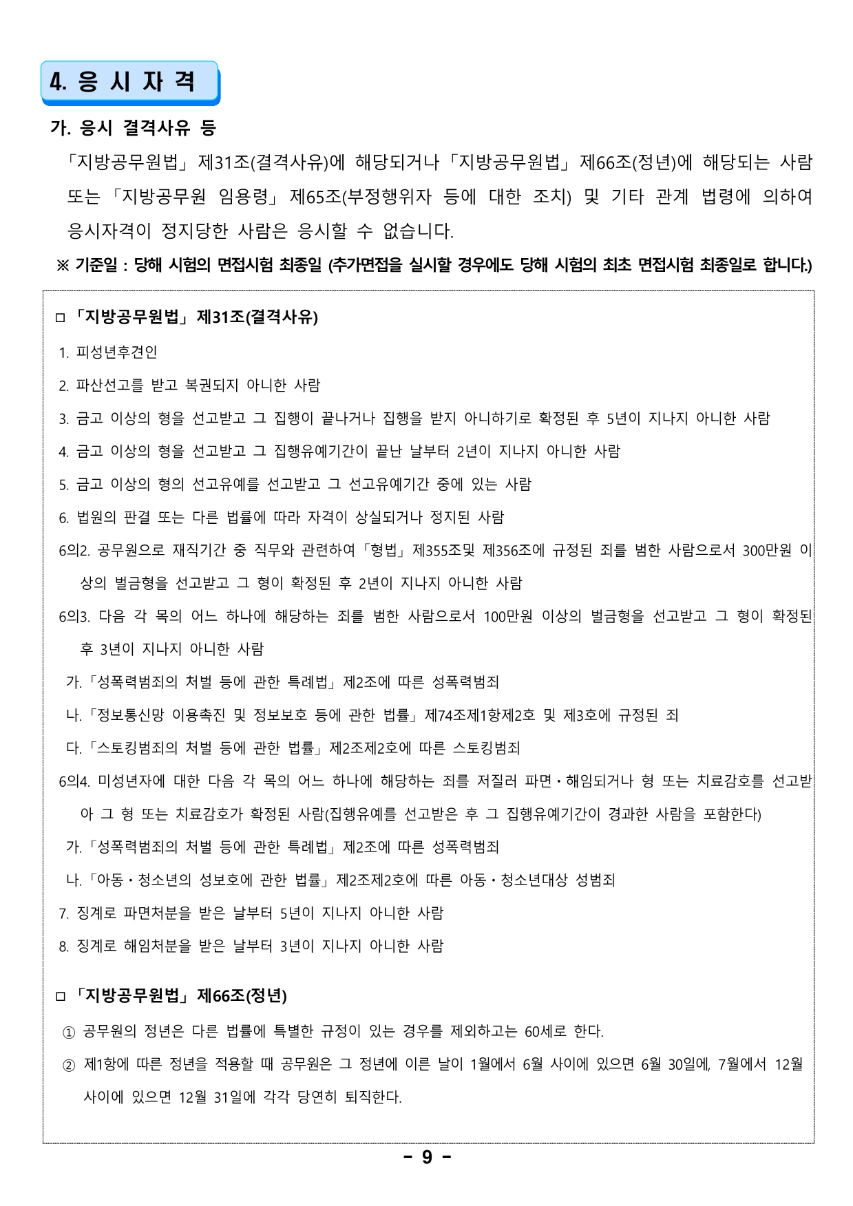 | 구 분 | 직 급 | 직 렬 | 직 류 | 제한 내용 |