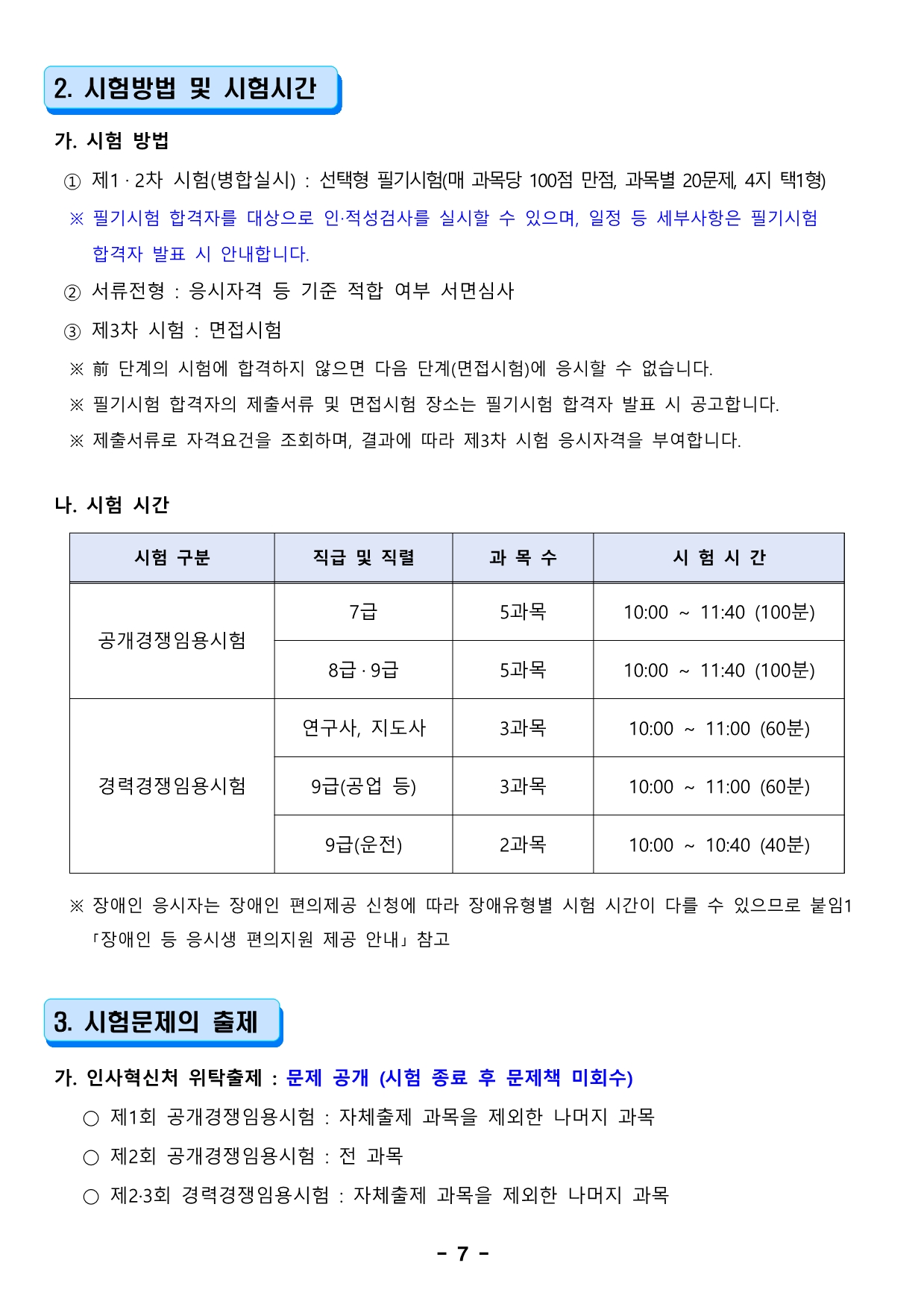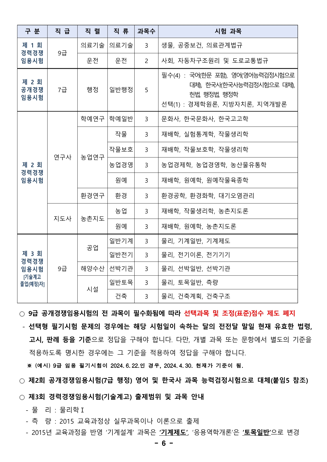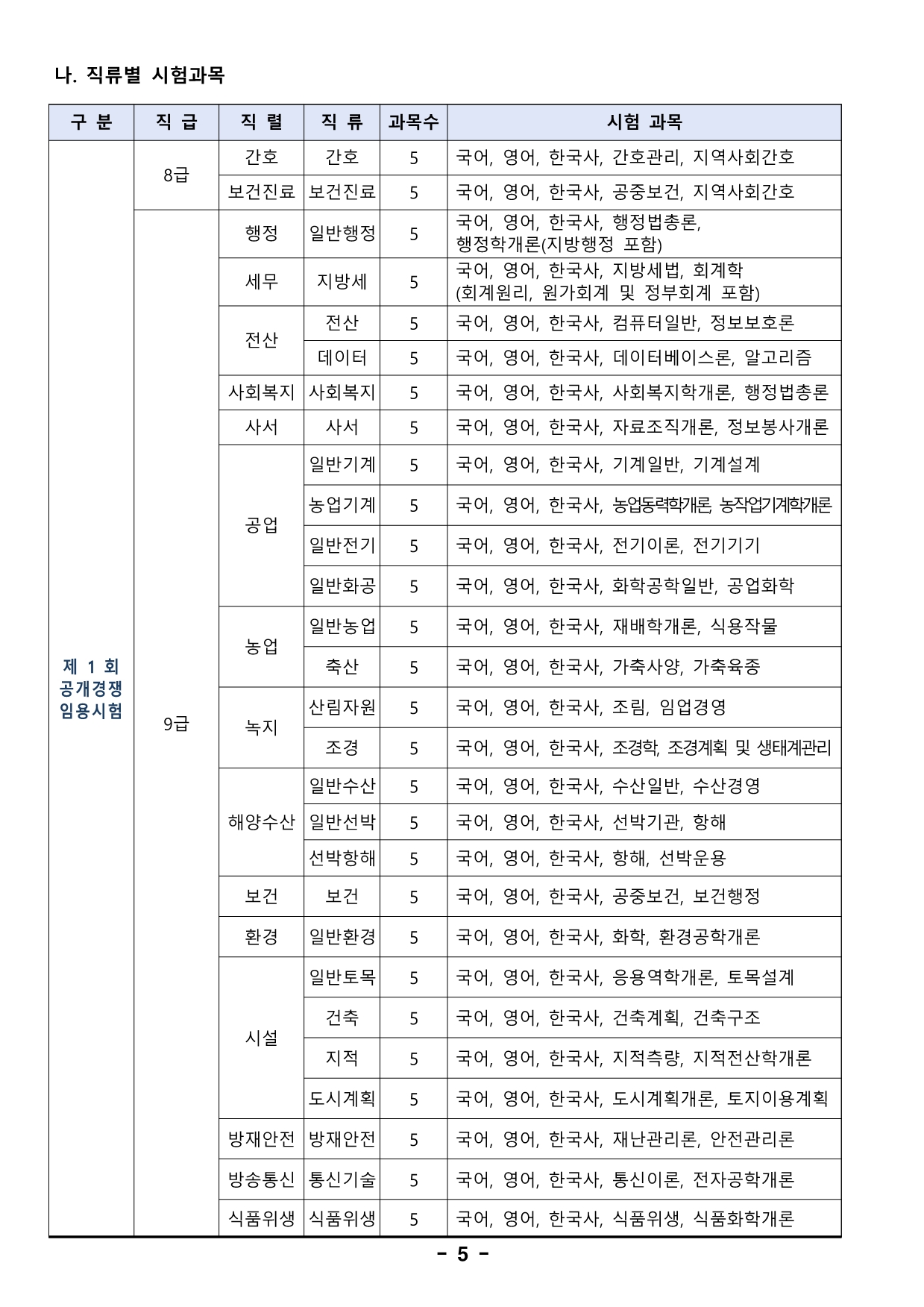 | 구 분 | 직 급 | 직 렬 | 직 류 | 과목수 | 시험 과목 |
