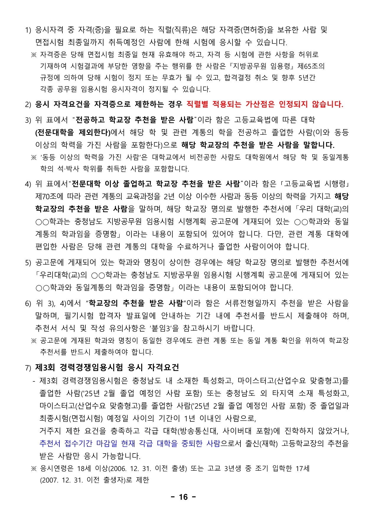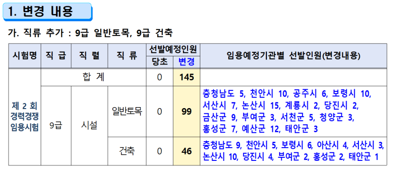 | 방송통신 | 통신기술 | 10 | 11 | 천안시 1, 공주시 2, 보령시 1, 서산시 1, 논산시 1, 당진시 1(0→1), 금산군 1, 부여군 1, 태안군 1 |
