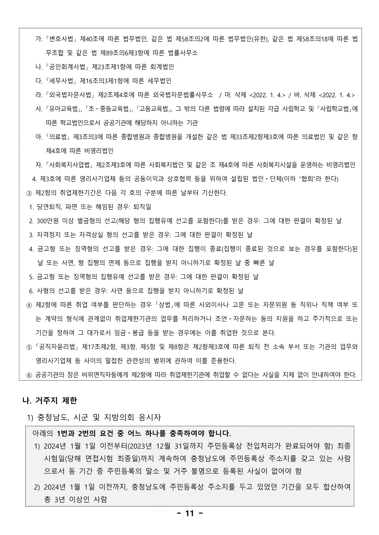| 방재안전 | 방재안전 | 7 | 8 | 공주시 1, 계룡시 1, 금산군 2, 부여군 1(0→1), 서천군 1, 예산군 2 |